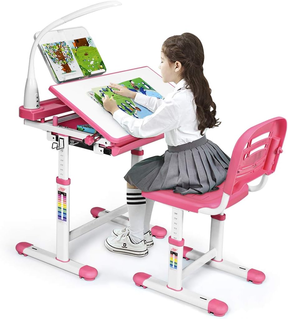 Bureau enfant avec chaise hauteurs réglables, angle de bureau réglable, lampe de direction ajustable, sup