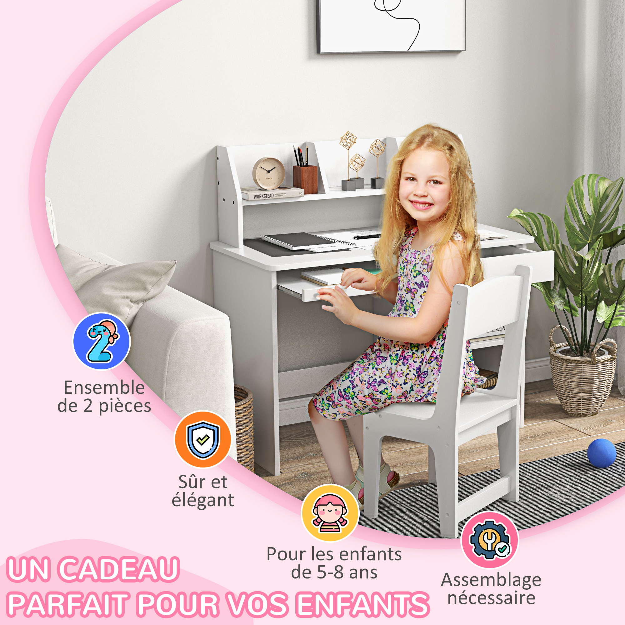 Bureau enfant multi-rangement - ensemble bureau, chaise, étagère - tiroir, plateau coulissant, 2 niches,
