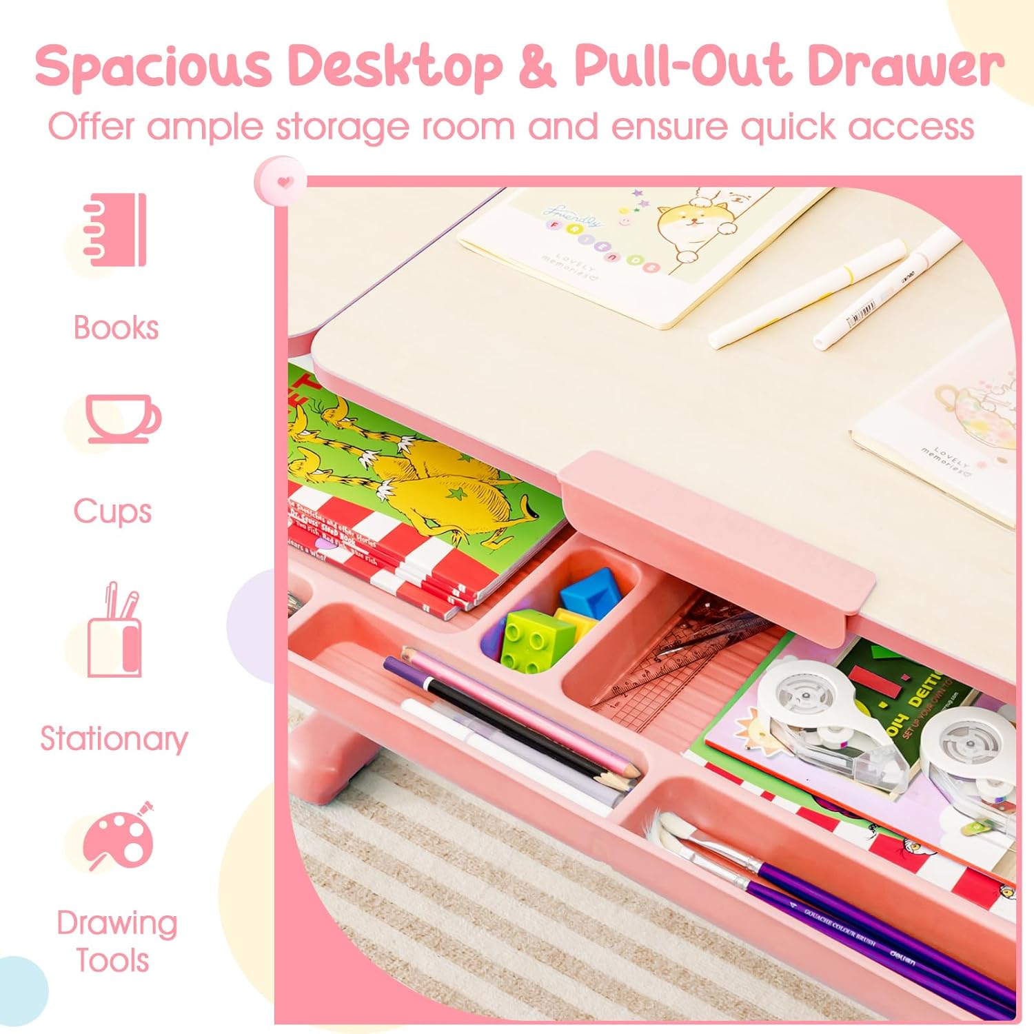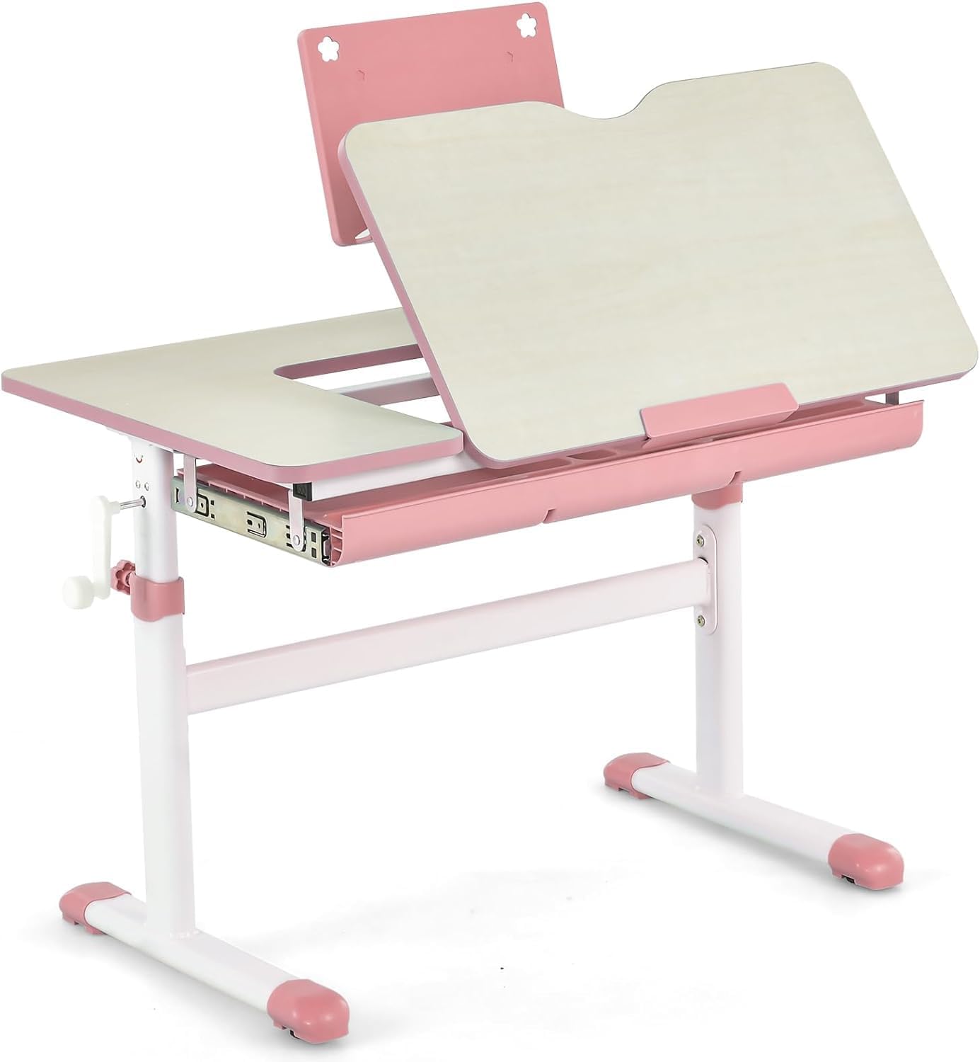 | Libellé | Bureau enfants, table réglable en hauteur, table d’étude avec plateau inclinable & support de livre & tiroir, poste de travail robuste (rose) |