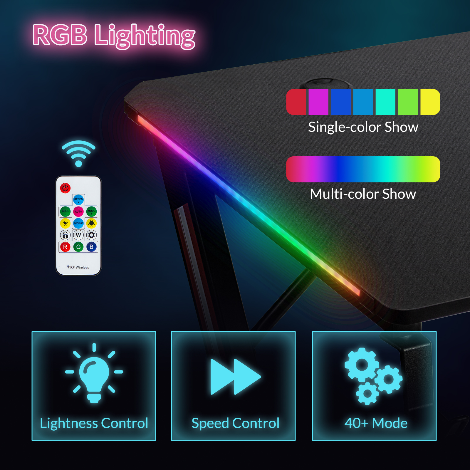 Expérience d'éclairage immersive - Laissez-vous emporter par le jeu avec la lumière LED RVB, qui propose une impressionnante variété de plus de 40 modes d'éclairage dynamiques. Ajustez la luminosité et la vitesse, sélectionnez la couleur souhaitée et profitez de la fonction de mémoire qui conserve le dernier mode utilisé lors de la mise sous tension. La télécommande incluse offre des options illimitées.