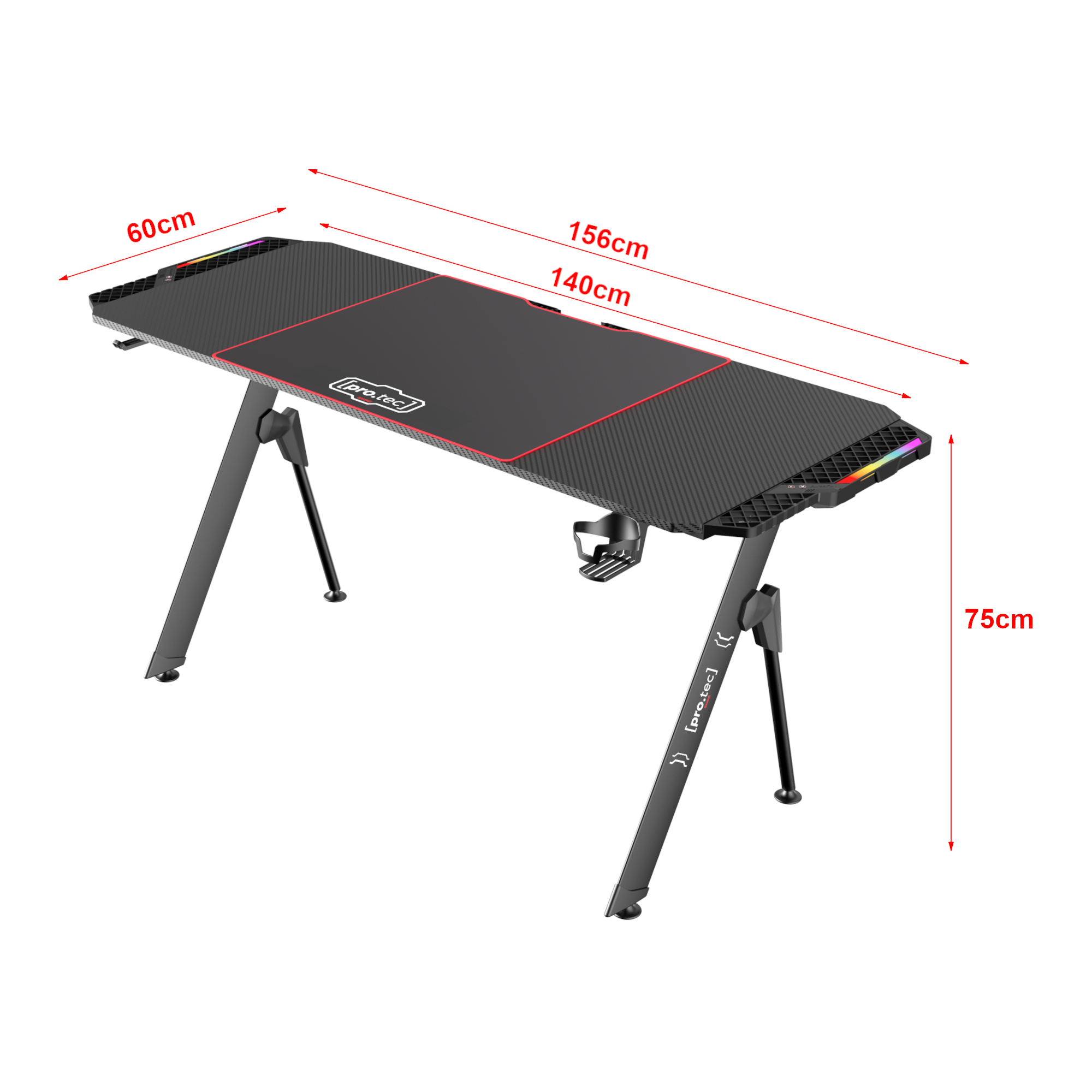 | Libellé | Bureau gaming Stockton avec éclairage LED 156 x 60 x 75 cm [pro.tec] |