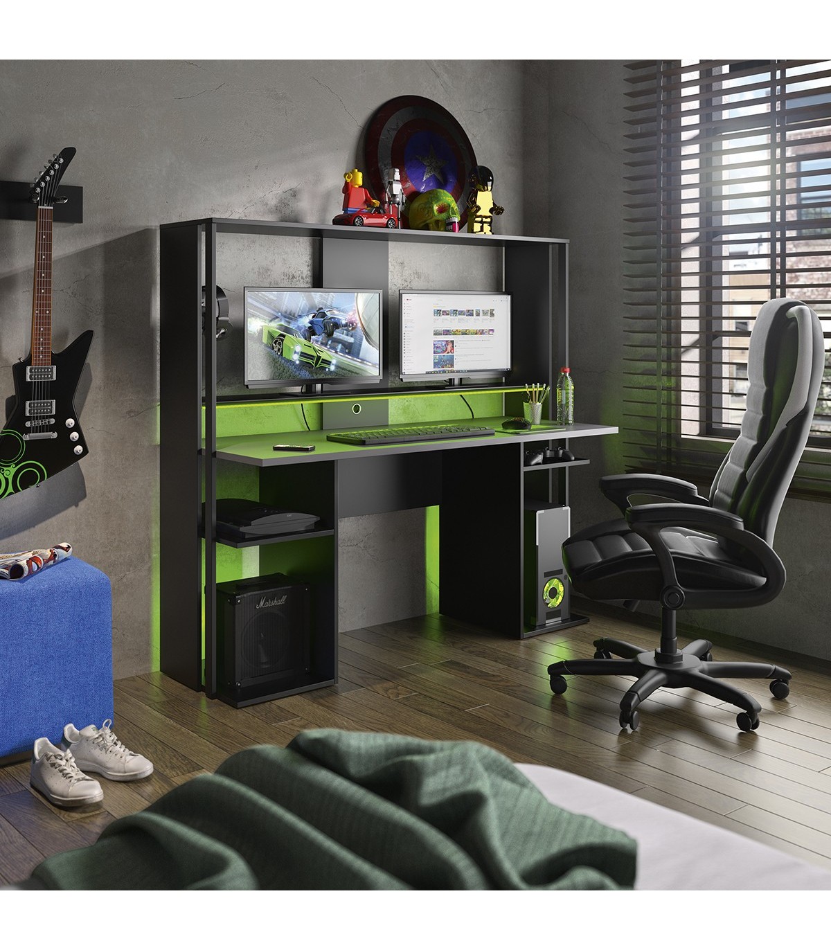 Découvrez le bureau gamer STREAM qui deviendra rapidement le compagnon idéal de vos prochaines parties de jeux vidéos. Conçu pour le gaming, il accueillera l'ensemble de vos équipements, écrans, unité centrale, casque, clavier, souris...