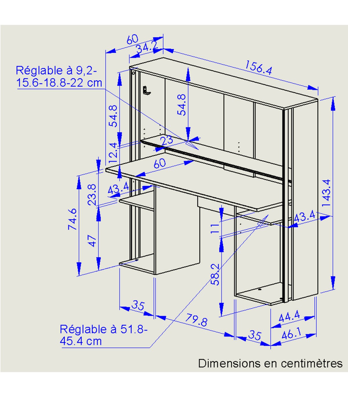 • Tablettes au dessus des 2 zones pour unité centrale réglables en hauteur 3 positions