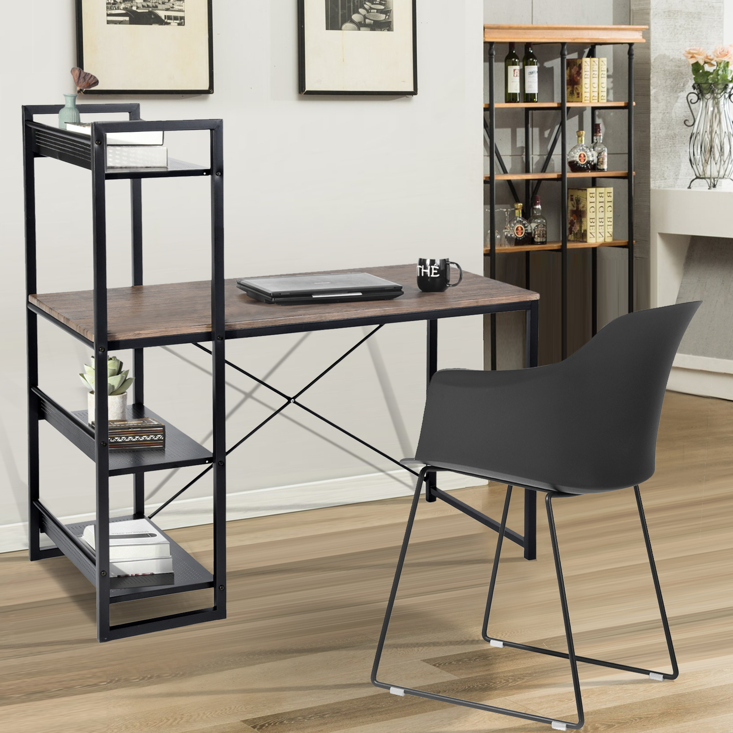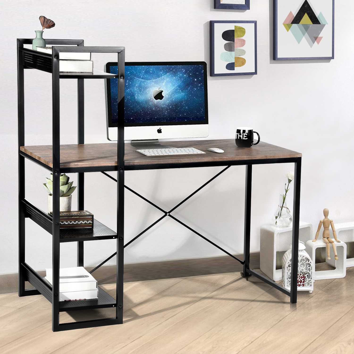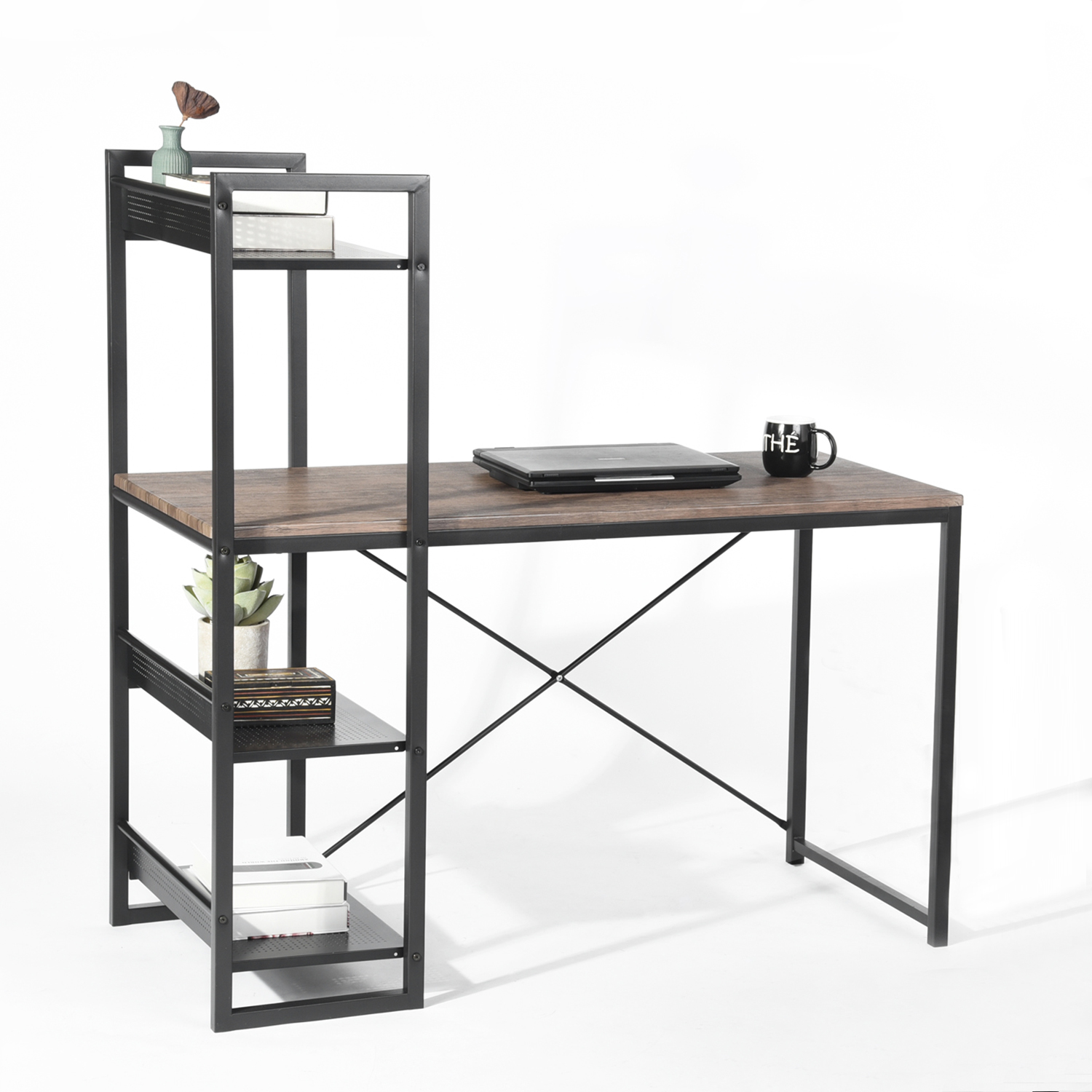 | Libellé | Bureau Informatique Avec Rangement 4 étagères, Poste de Travail Industriel, en Bois et Métal, Noyer |