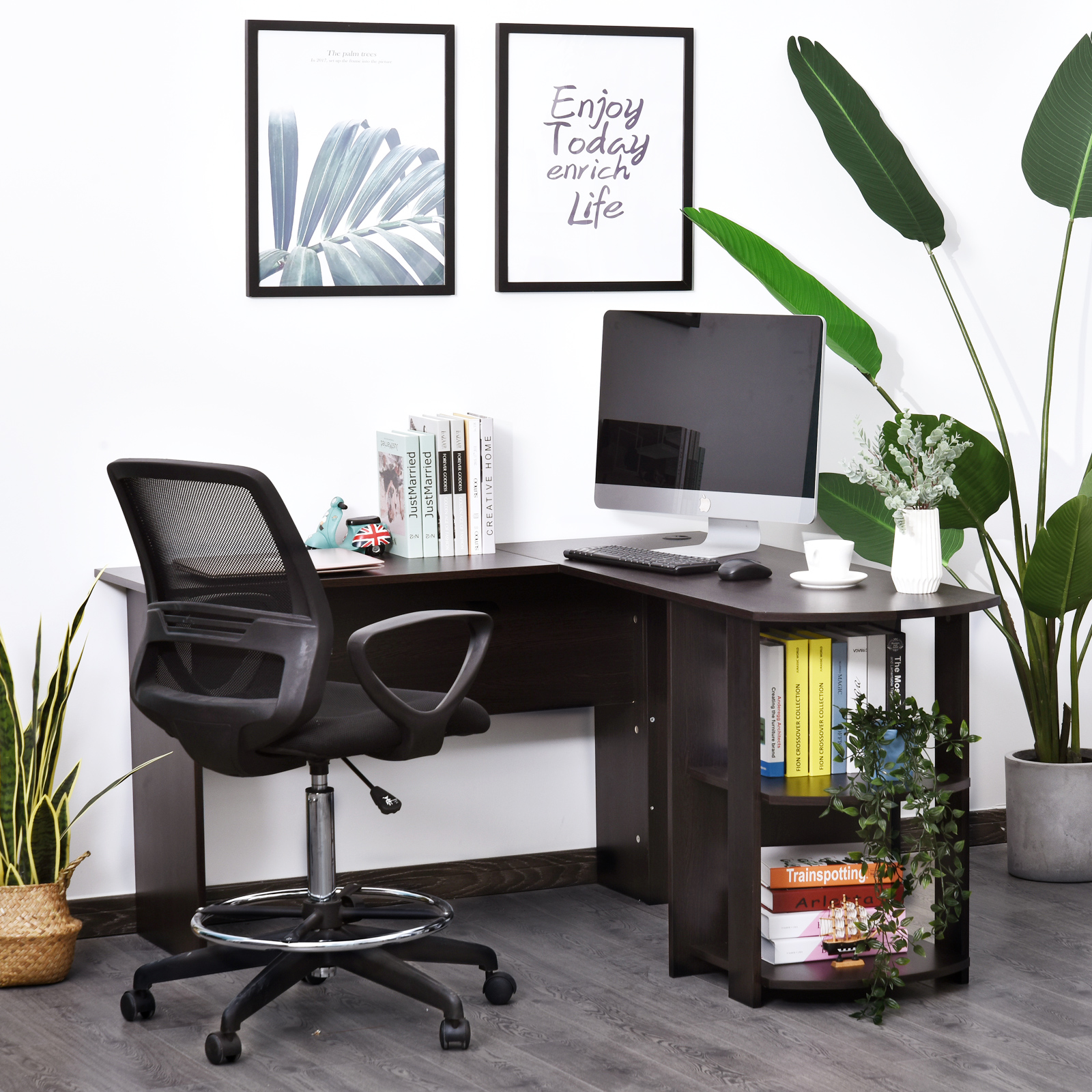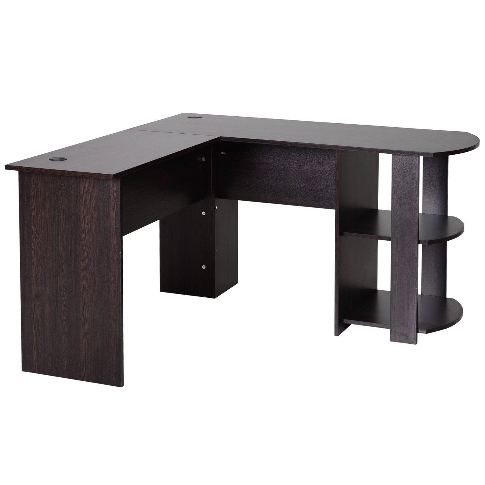 Bureau informatique bureau d'angle contemporain avec étagères imitation bois wengé