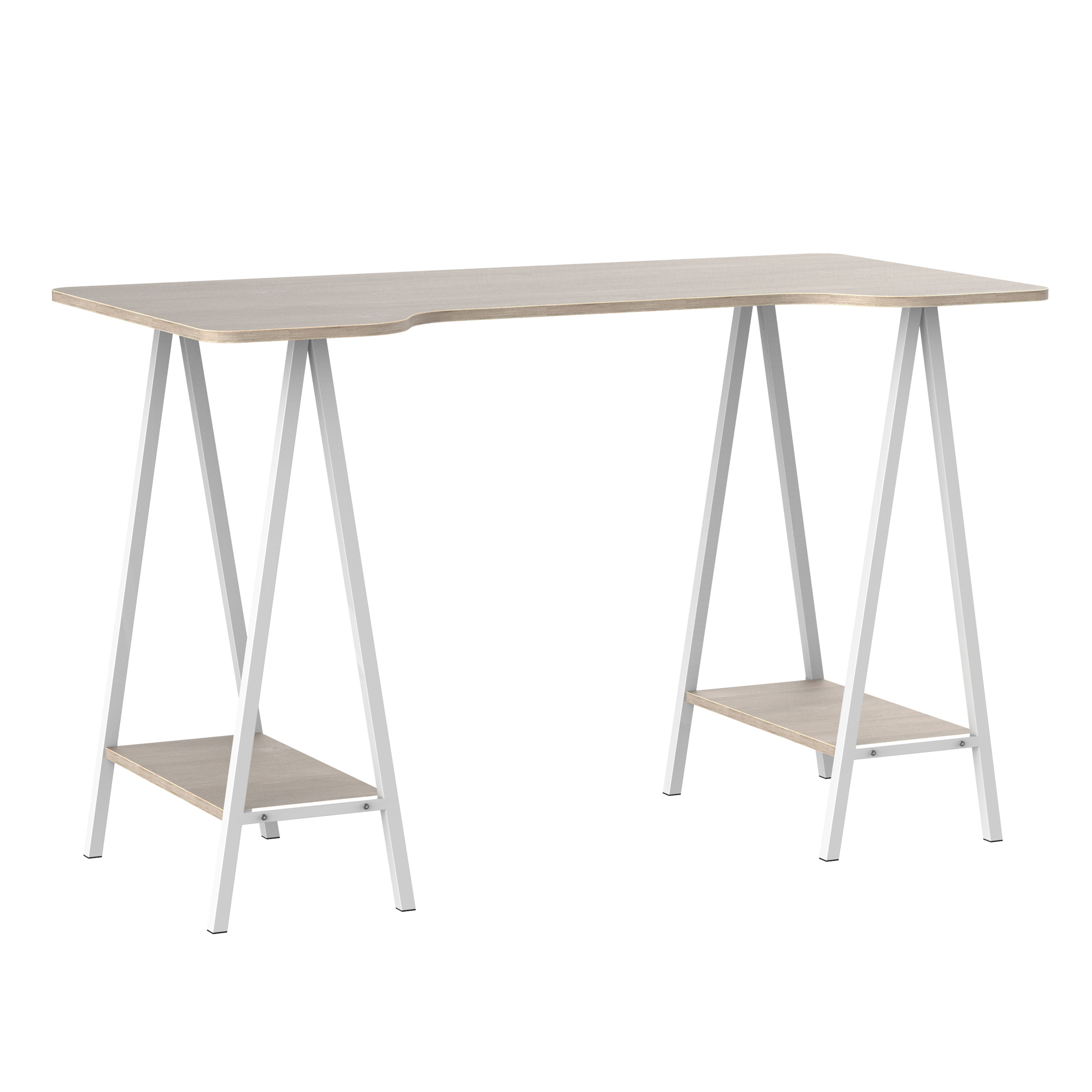 | Libellé | Bureau informatique design 2 étagères grand plateau métal blanc panneaux particules imitation bois gris clair |