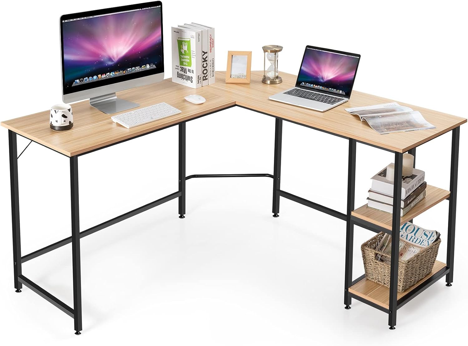 - Grand Espace de Rangement : Avec une grande surface et 2 étagères, notre bureau d'angle vous offre assez d'espace pour ranger les articles de travaux ou les équipements de jeu, vous apportant une espace plus ordonnée.