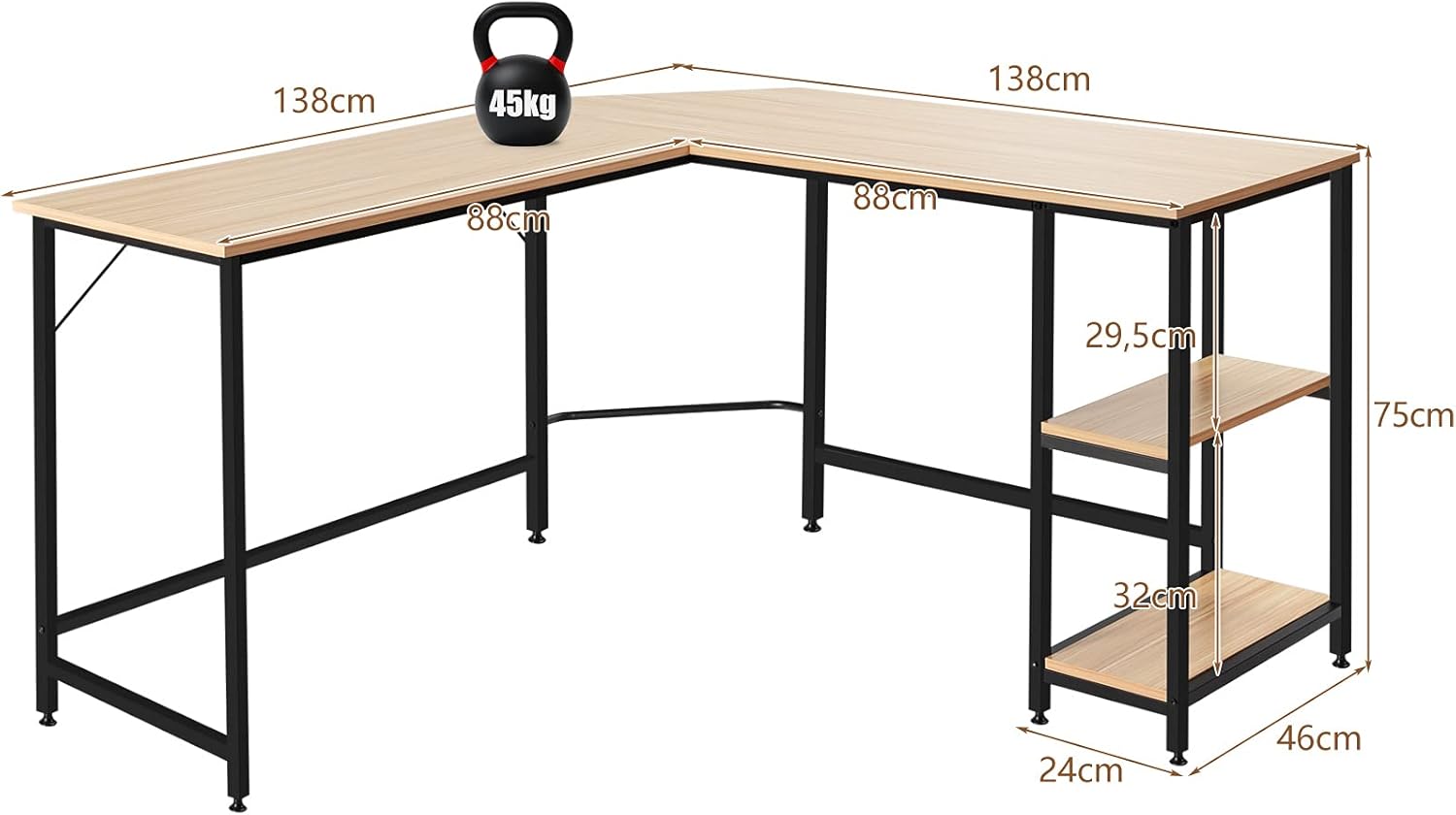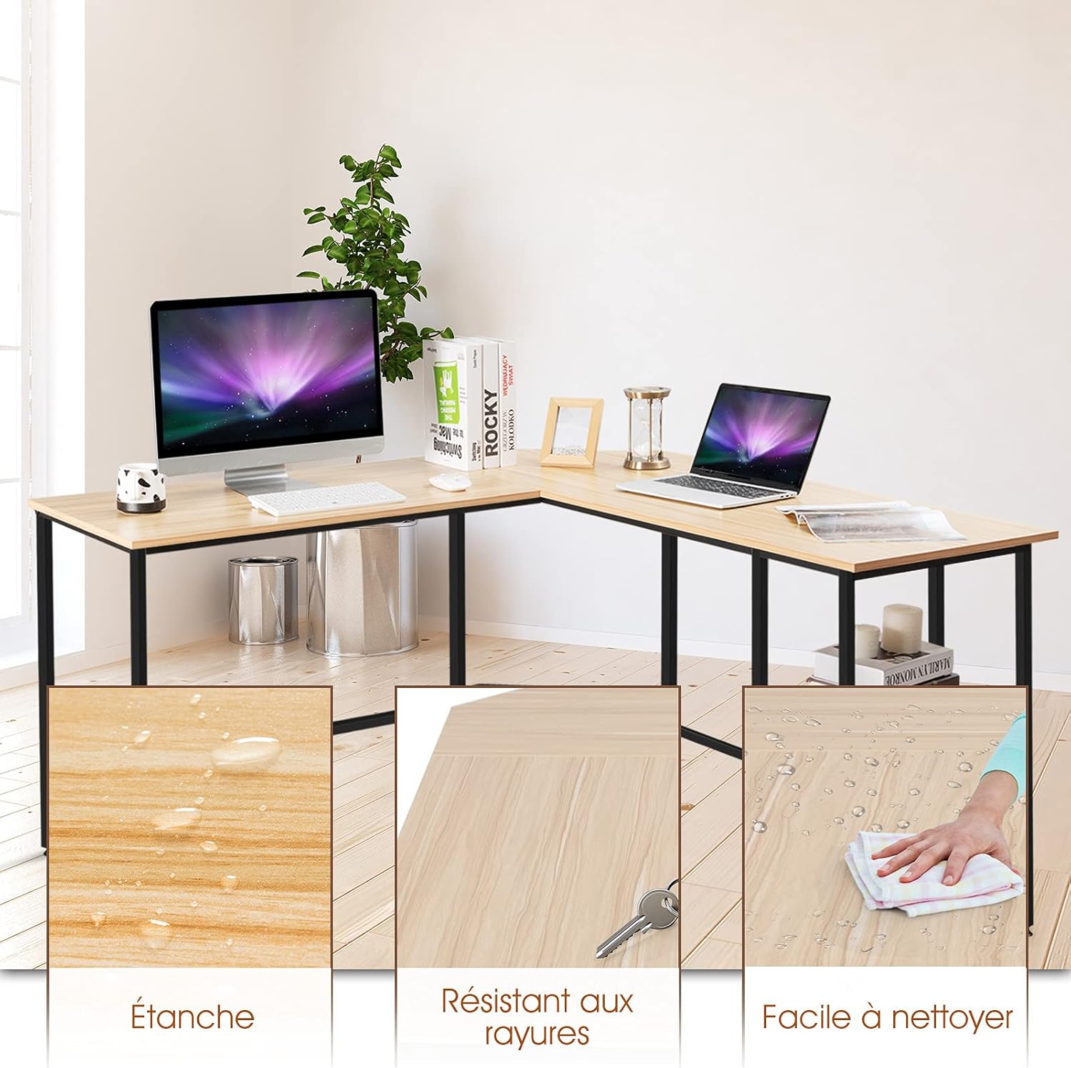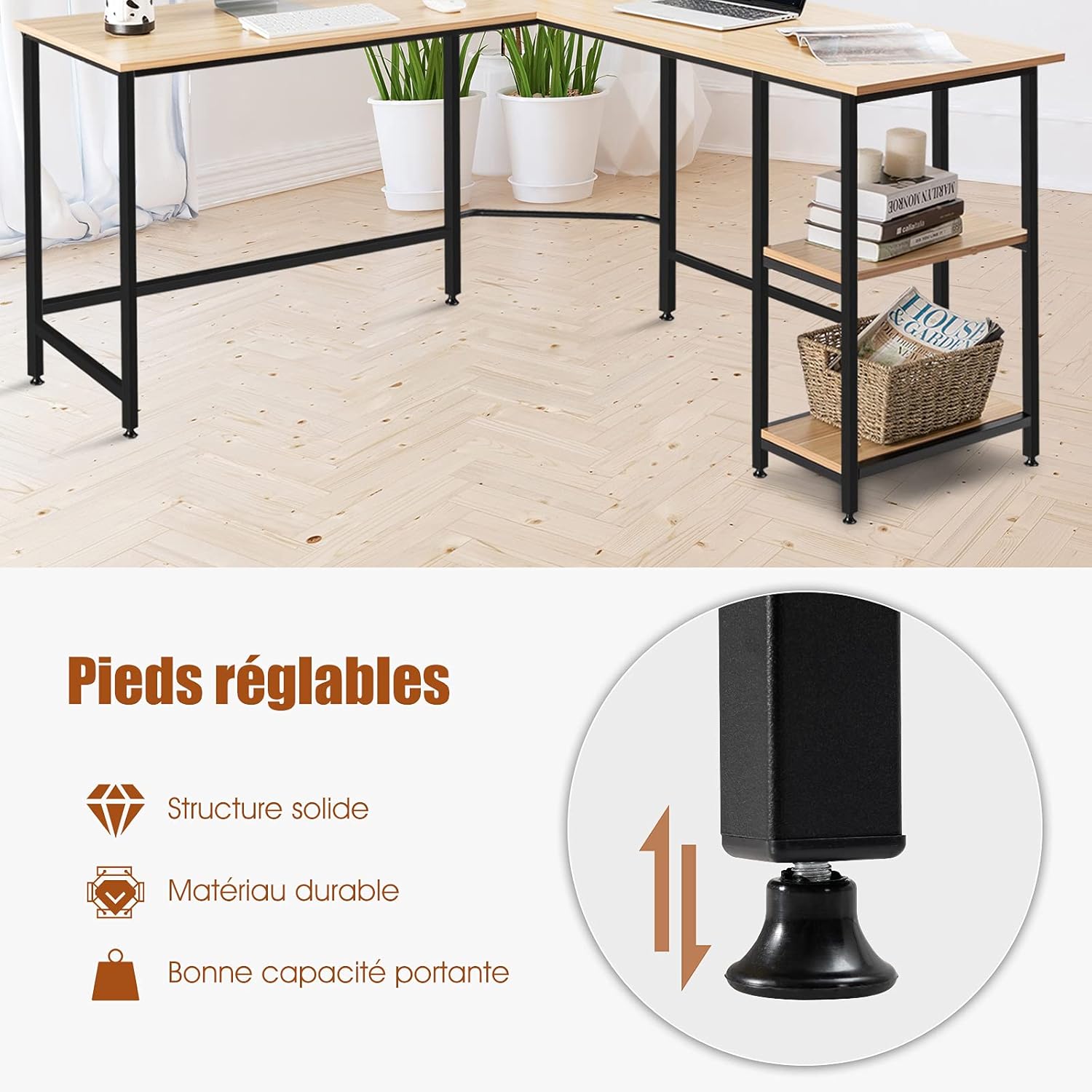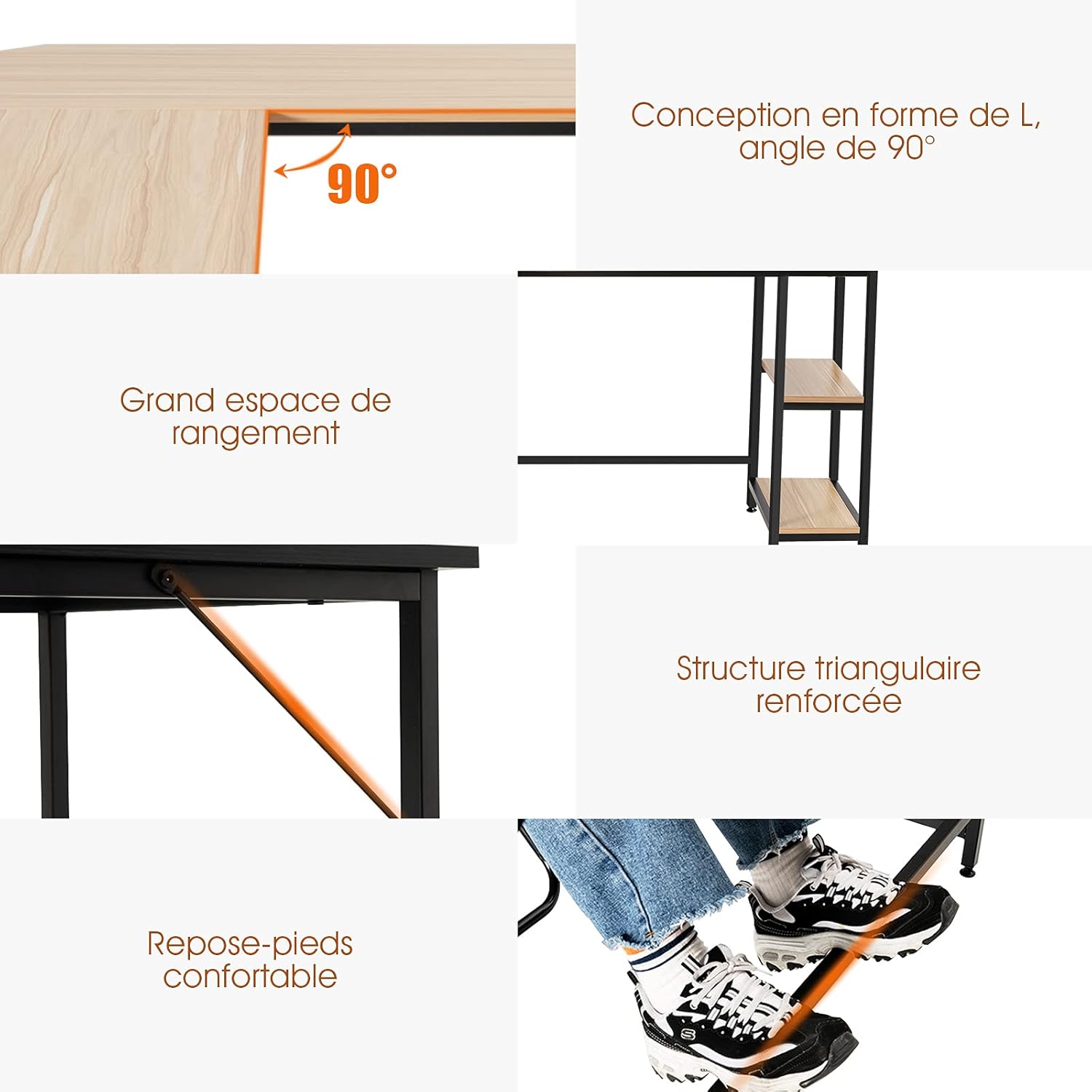| Libellé | Bureau informatique en l, bureau d'ordinateur avec 2 etagère de rangement, meuble bureau gaming naturel |