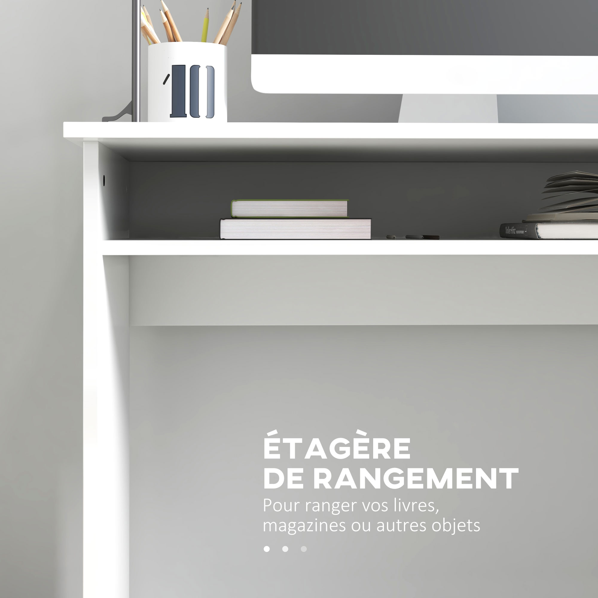 Bureau informatique multimédia multi-rangement 1 étagère - 90l x 50P x 74H cm blanc