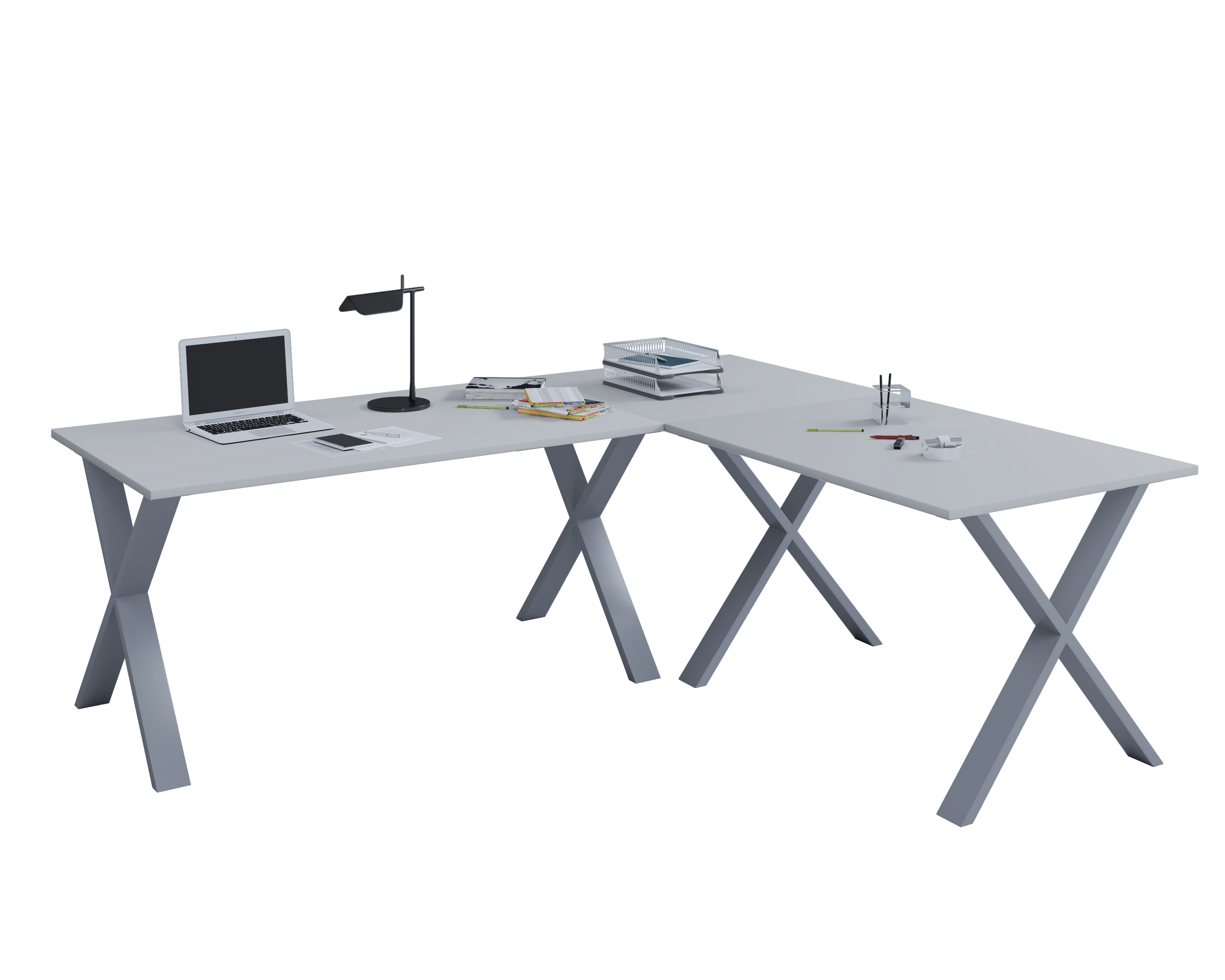 Lona Bureau d'angle 130x130x50 cm, pieds en X, gris, argenté. Voir tous nos bureaux Lona en gris dans la catégorie "Bureaux Lona gris". Découvrir aussi nos autres catégories de bureaux Lona. Les bureaux sont disponibles en finition hêtre, gris, blanc, chêne et noyer. Obtenez des meubles de bonne qualité, confortables, conçus dans un design élégant et moderne. Nos meubles sont vendus à des prix vraiment très attractifs et compétitifs. Créez un intérieur qui vous ressemble, en créant un style qui vous est propre grâce à de nouveaux meubles. Combinez vos meubles avec d'autres éléments et accessoires pour créer une athmosphère chic et à la mode. Soyez toujours au goût du jour en matière d'habitat, et suivez les dernières tendances telles que présentées dans les revues et les magazines. Chez nous, vous trouverez des modèles de meubles et de décoration d'intérieur absolument uniques, chics et ultra confortables. Tous nos meubles offrent un design tendance.
