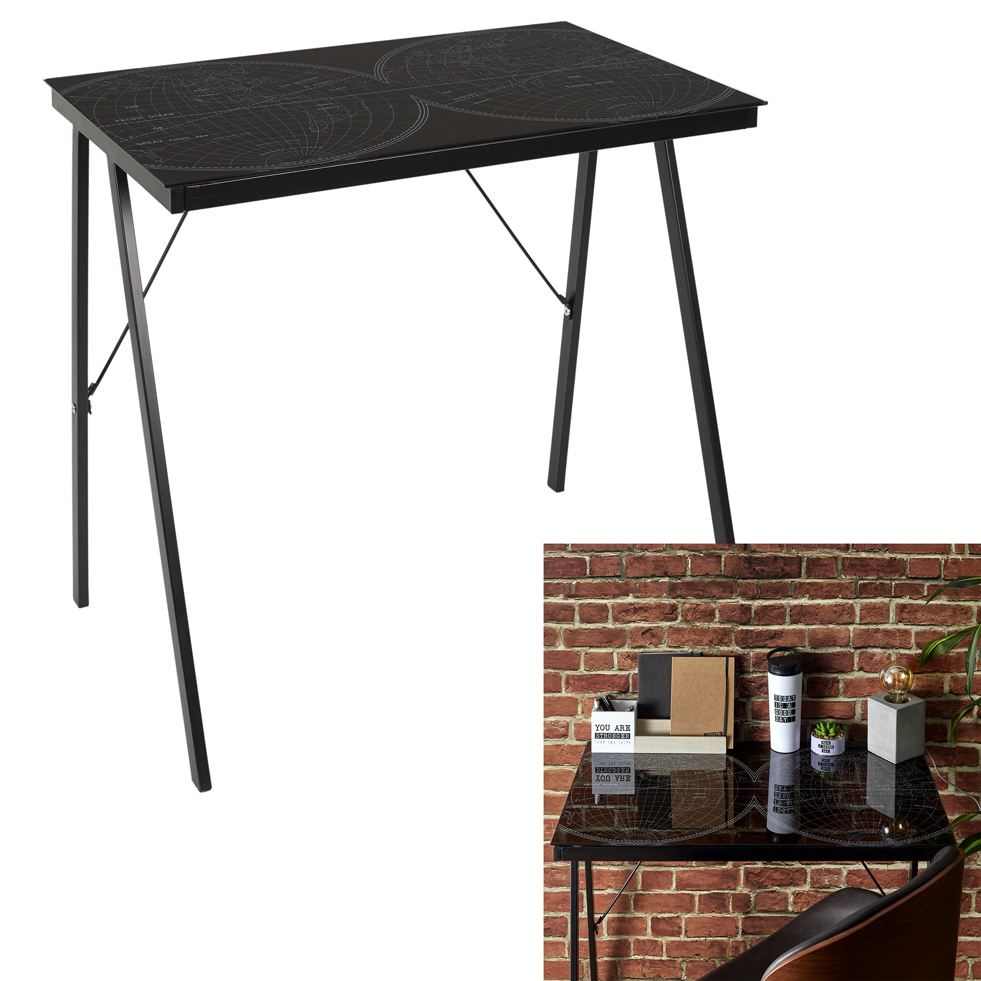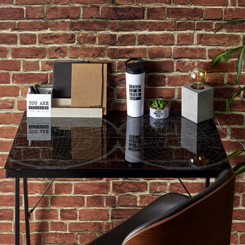 Bureau plateau en verre impression mappemonde