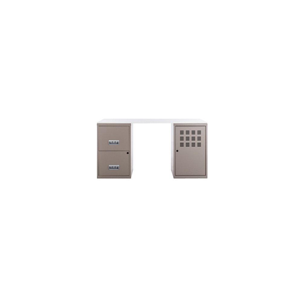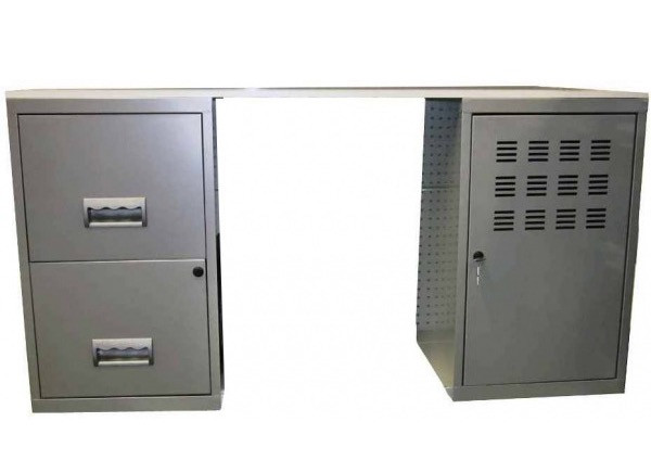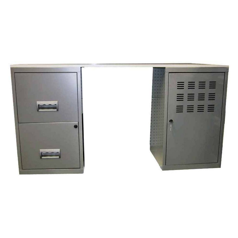 Bureau métal gris alu 1 colonne de 2 tiroirs 1 casier à porte Logis