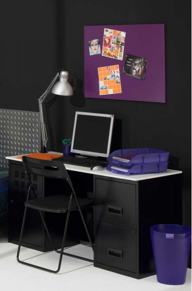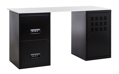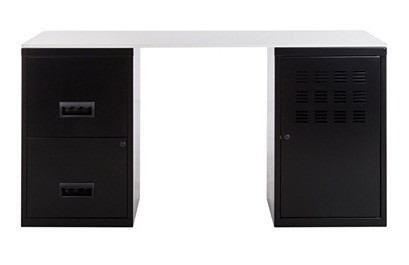 Bureau métal noir 1 colonne de 2 tiroirs 1 casier à porte Logis