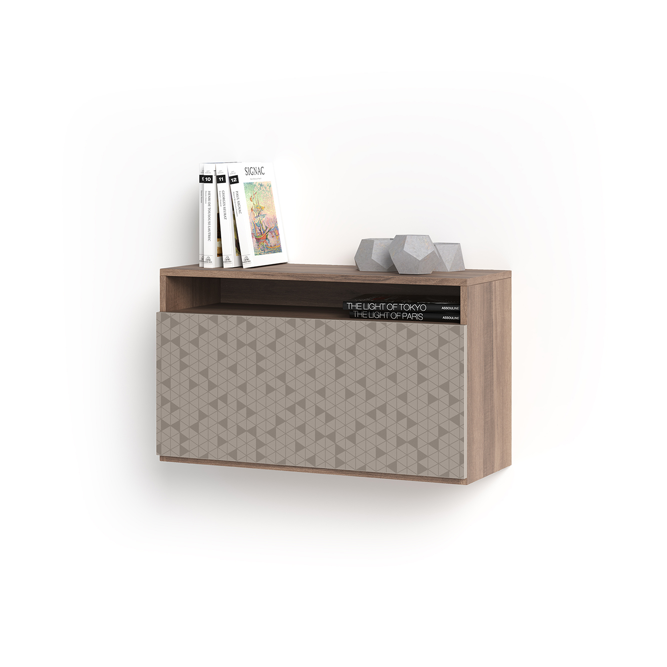 Bureau mural, modèle OPORTO, en mélamine, avec porte pliable sérigraphié. Noyer et Taupe Geo1