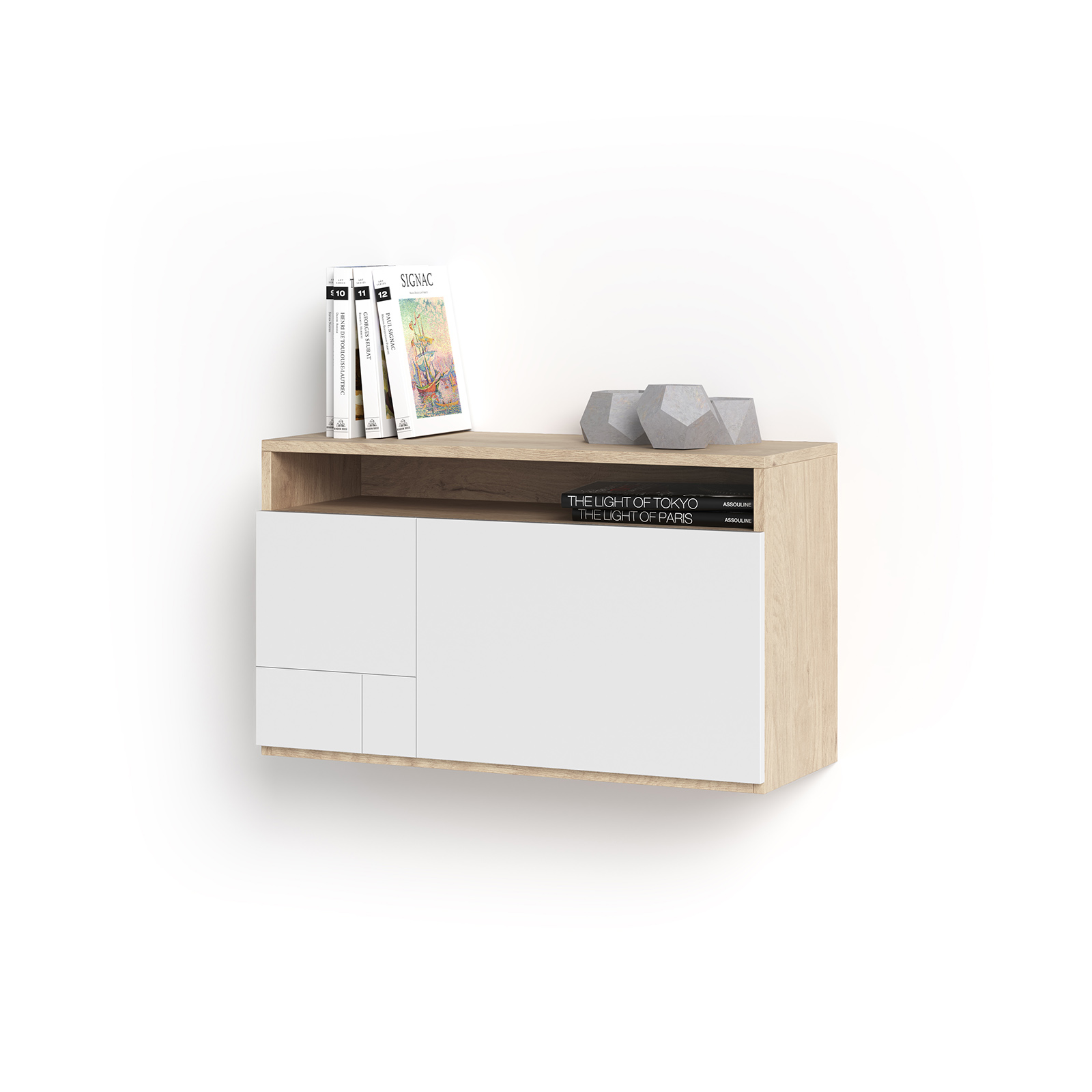 Bureau mural, modèle OPORTO, en mélamine avec porte rabattable. Chêne clair et Blanc