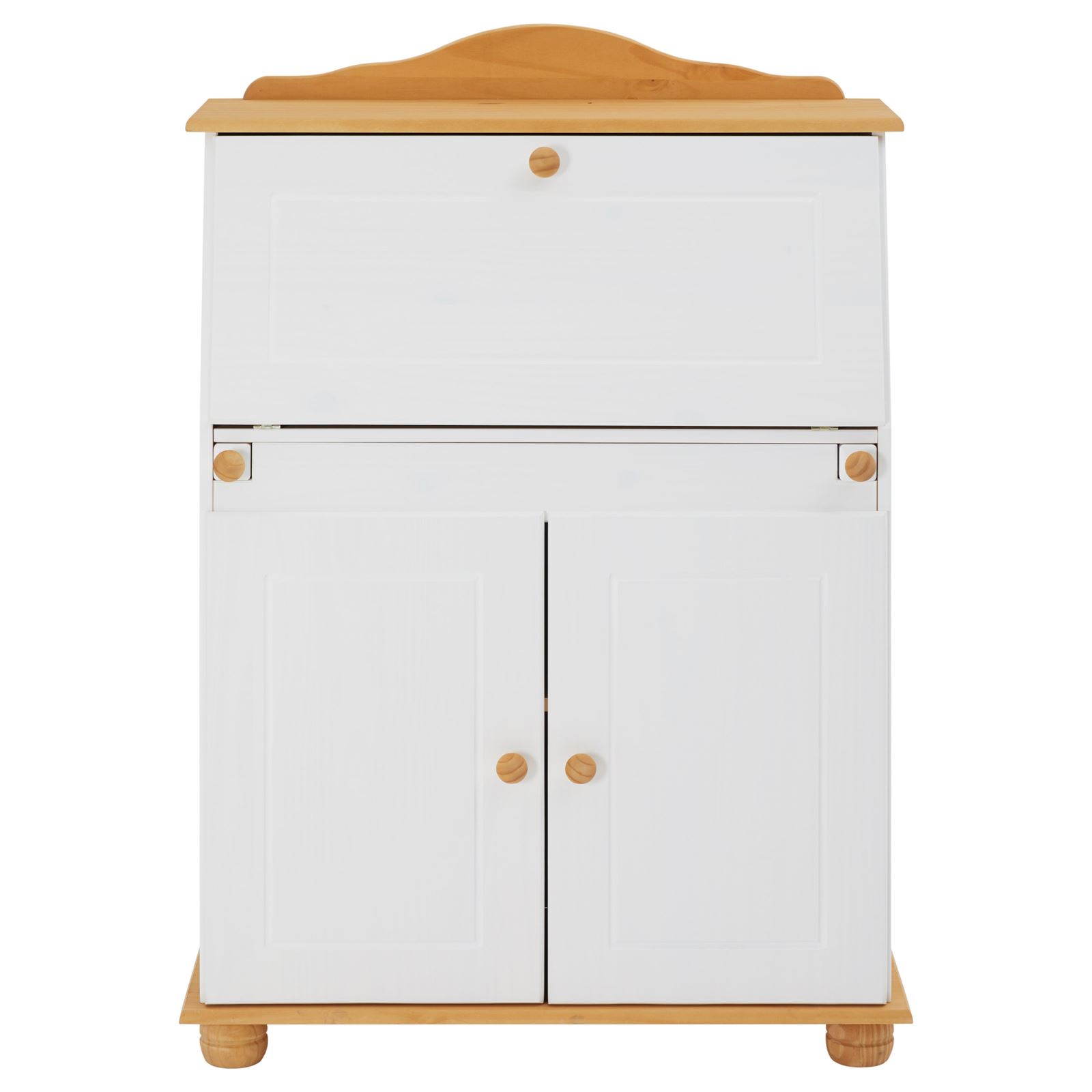 | Libellé | Bureau secrétaire DAVID avec abattant rangement plusieurs étagères 2 portes plan de travail rabattable, en pin massif blanc et brun |