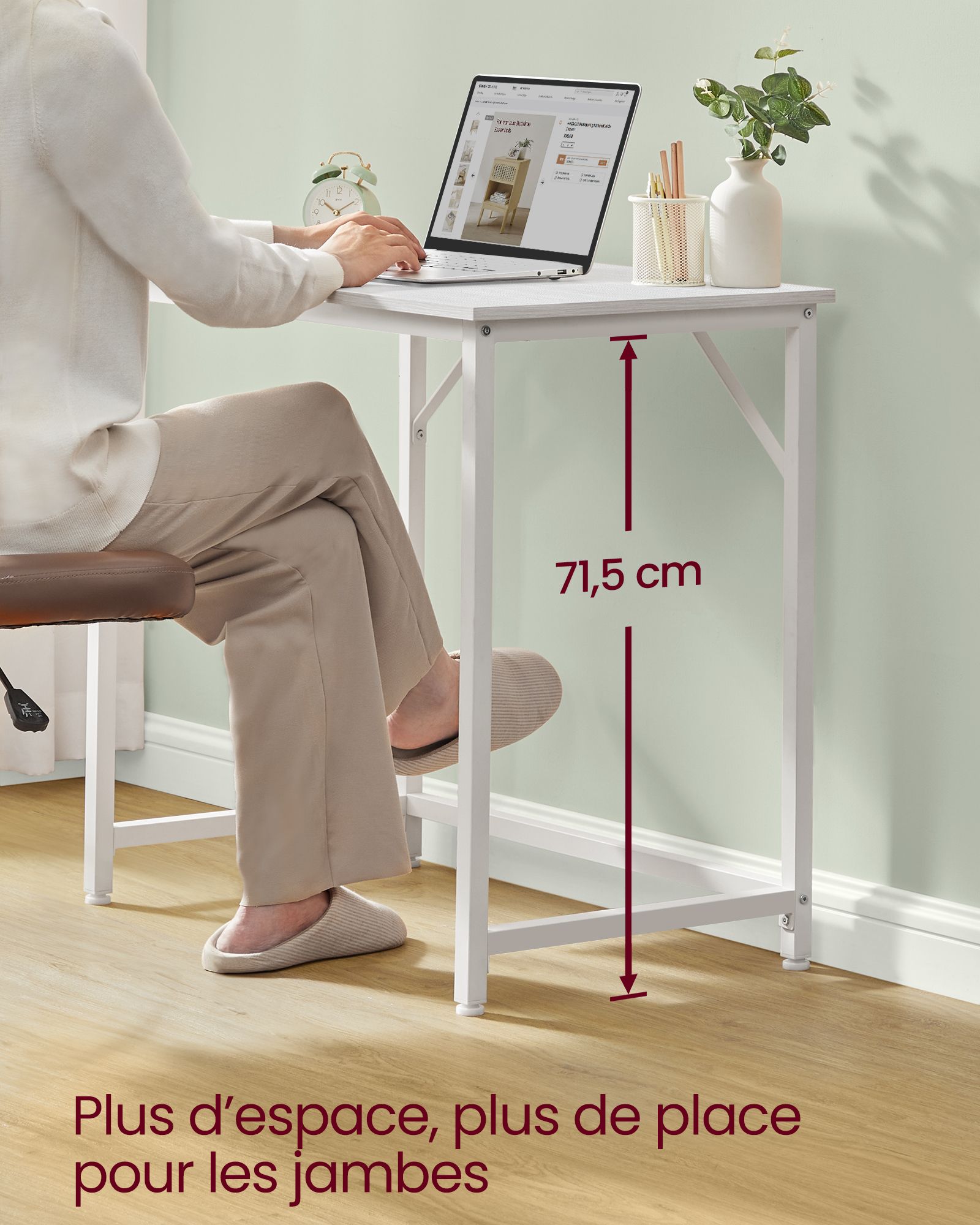 Avec son format compact de 50 x 80 cm, ce bureau est idéal pour créer un espace de travail fonctionnel même dans une petite pièce. Il offre suffisamment de place pour installer un ordinateur portable ou de bureau et travailler confortablement à la maison.