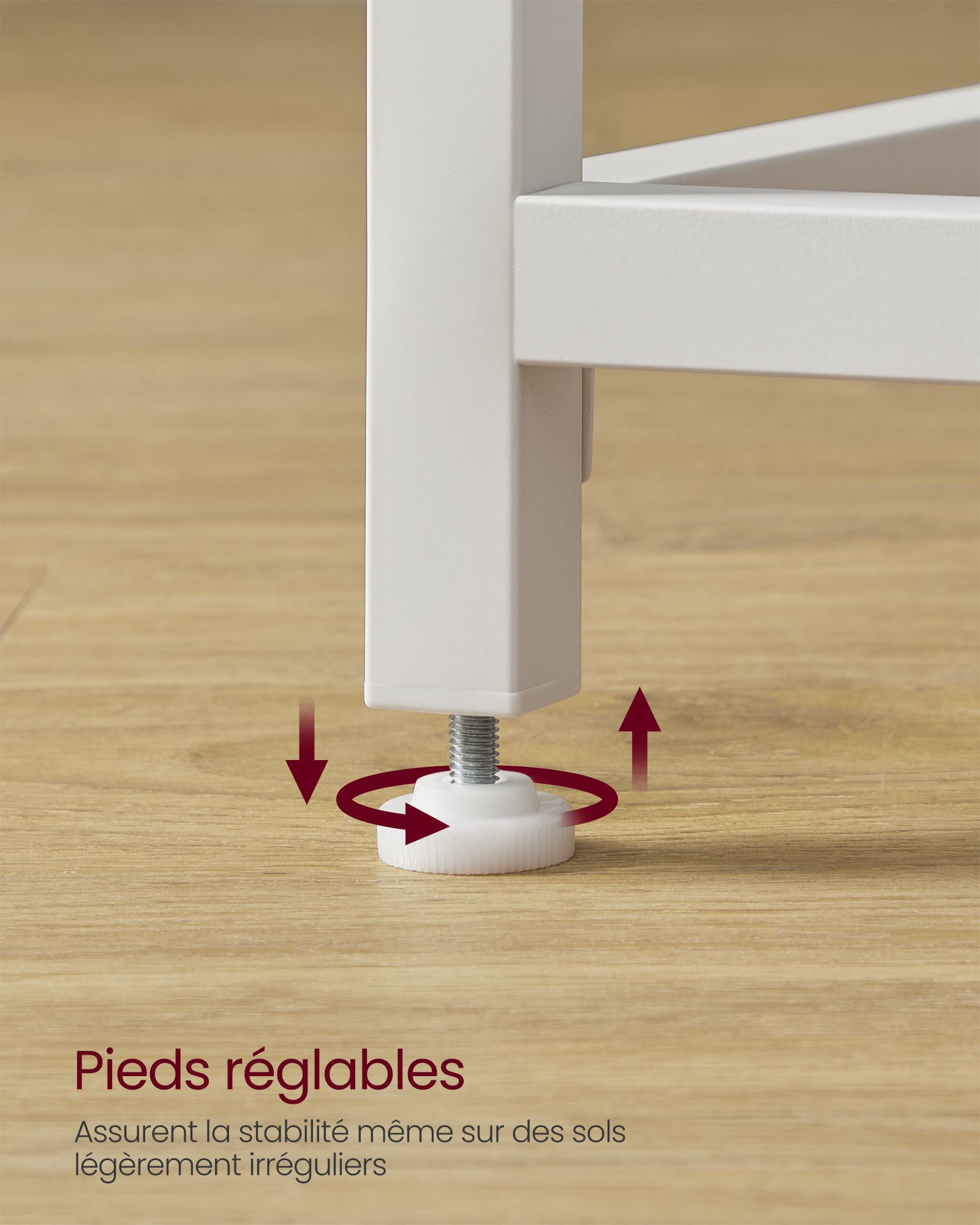 Pour plus de confort, les pieds réglables permettent de compenser les petites irrégularités du sol, offrant ainsi une bonne stabilité sans vacillement pendant l’utilisation.