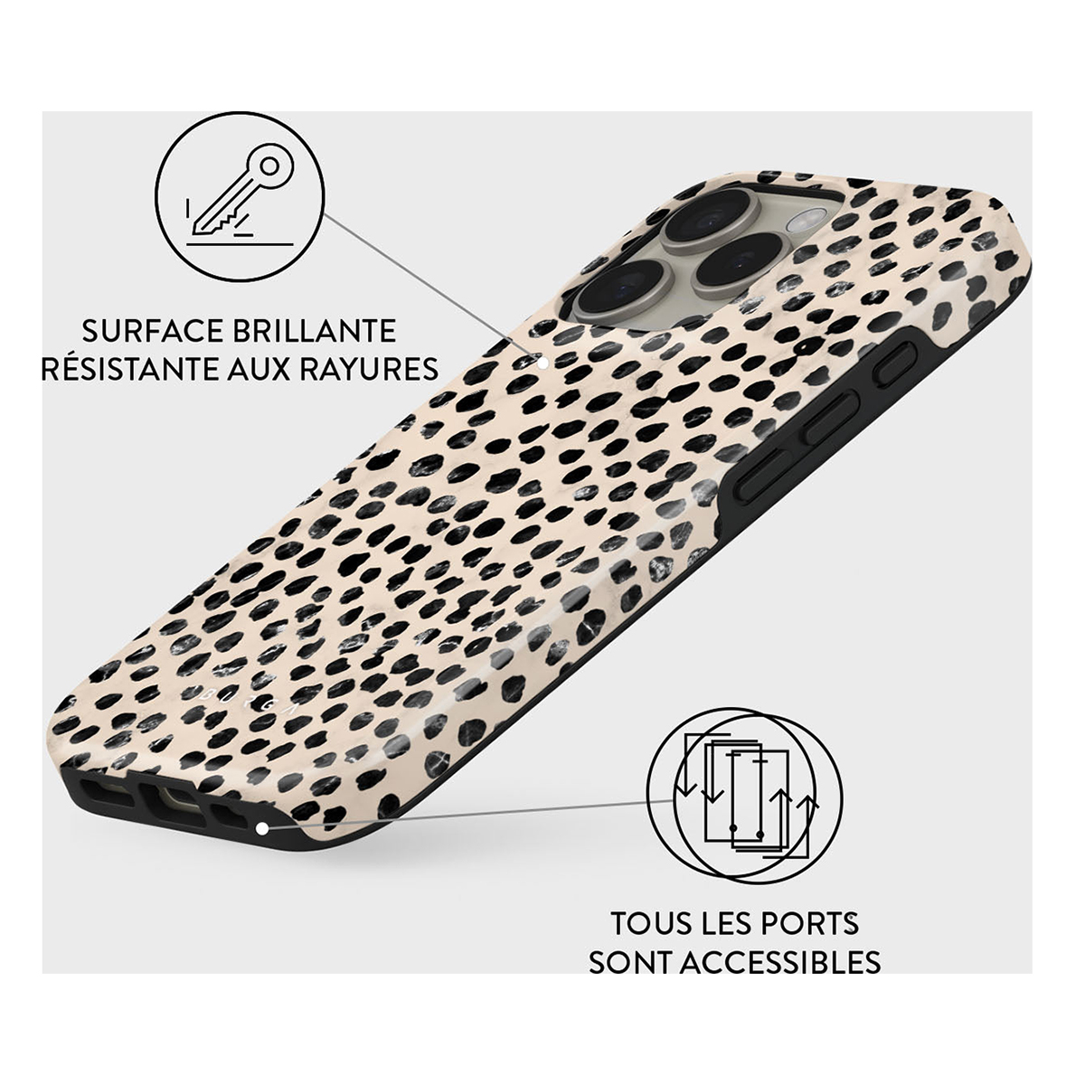 Conçue pour iPhone 16 Pro Max, cette coque BURGA modèle Almond Latte résulte d'une superposition de deux couches de protection dont TPU et silicone. Elle protège votre iPhone des chutes et des rayures au quotidien. Les bords surélevés protègent la caméra, ainsi que l'écran lorsque votre iPhone est orienté vers le bas. Un véritable accessoire de mode, la coque affiche un superbe imprimé qui ne se décolore pas.