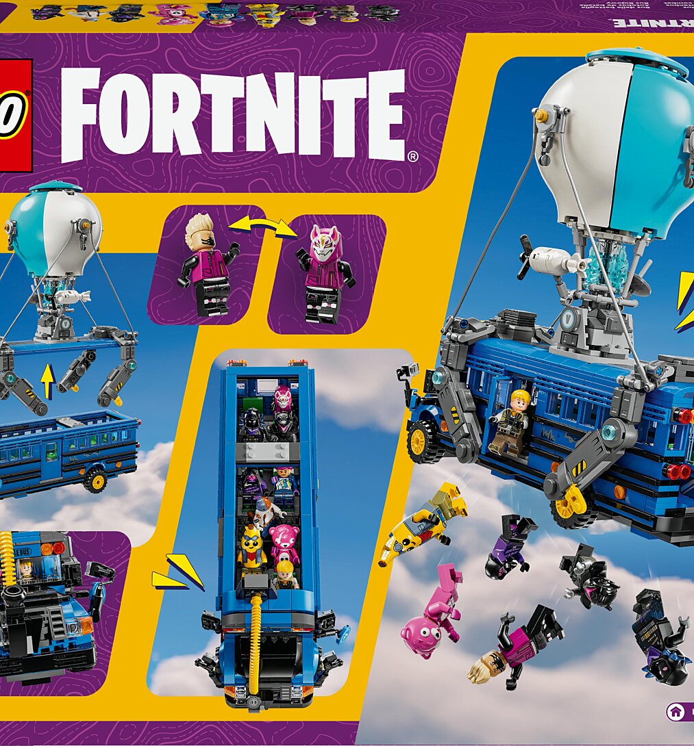 Stimulez l’imagination des enfants avec le bus de combat LEGO® Fortnite® (77073) conçu pour les fans dès 10 ans. Inspiré de l’incroyable jeu vidéo, ce set de construction invite les amateurs du jeu à créer un superbe véhicule Fortnite. Les fans voyagent dans le monde passionnant de LEGO Fortnite en construisant le bus, doté de roues qui tournent, d’un toit amovible et de la montgolfière culte. Mais ce n’est que le début ! Une fois le bus terminé, ils vont adorer découvrir les accessoires inclus, comme le bleuvage, le grappin, les pioches et le slap juice, ainsi que les 9 minifigurines de skins emblématiques de Fortnite. Pour des aventures encore plus réalistes, elles peuvent prendre place dans le bus. Après le jeu, les enfants peuvent exposer fièrement ce modèle collector dans leur chambre ou leur salle de jeux. C’est également un beau cadeau à offrir à des passionné(e)s de jeux vidéo et de LEGO Fortnite, qui vont passer des heures à explorer leur créativité avec ce set.
