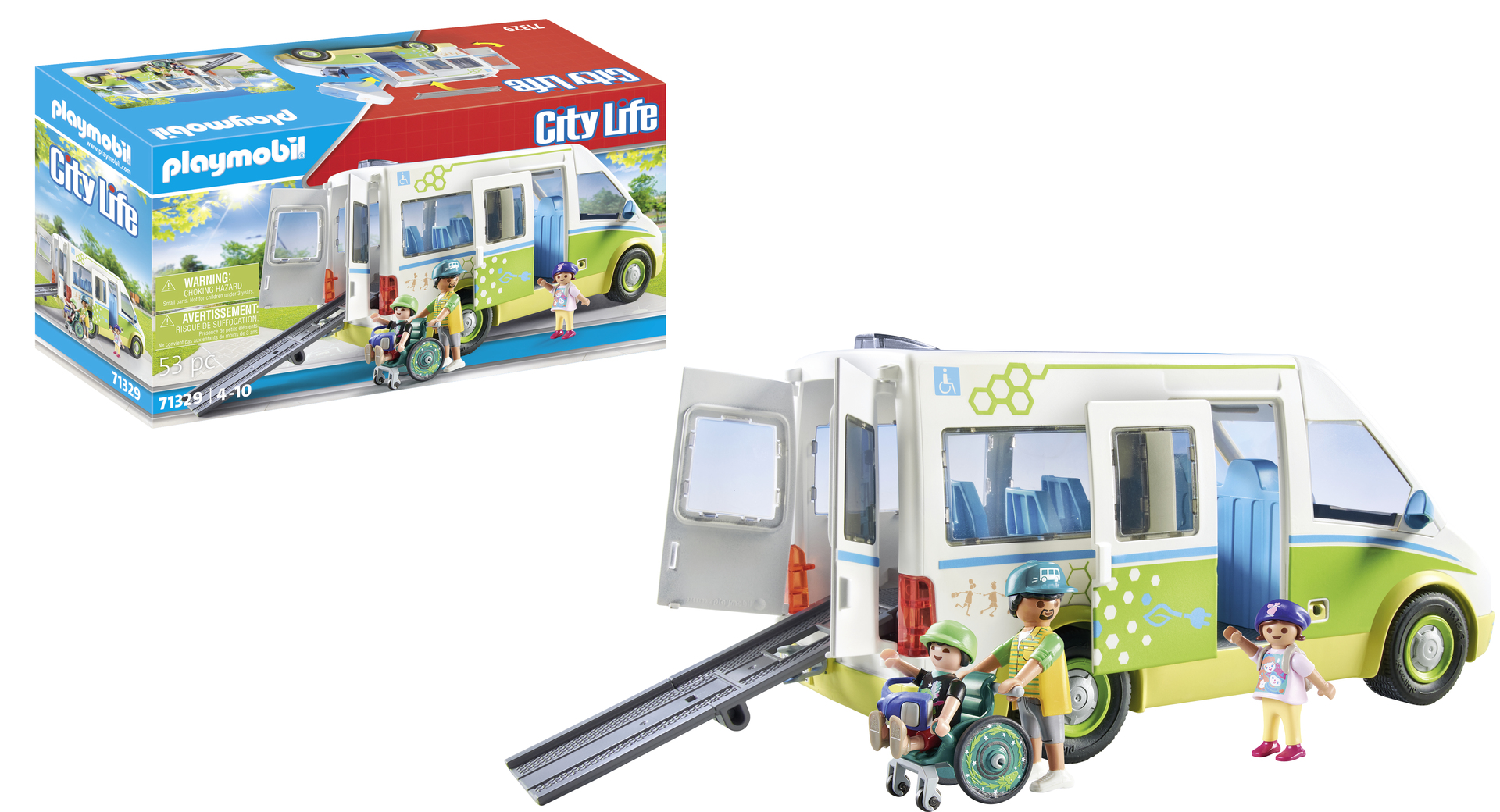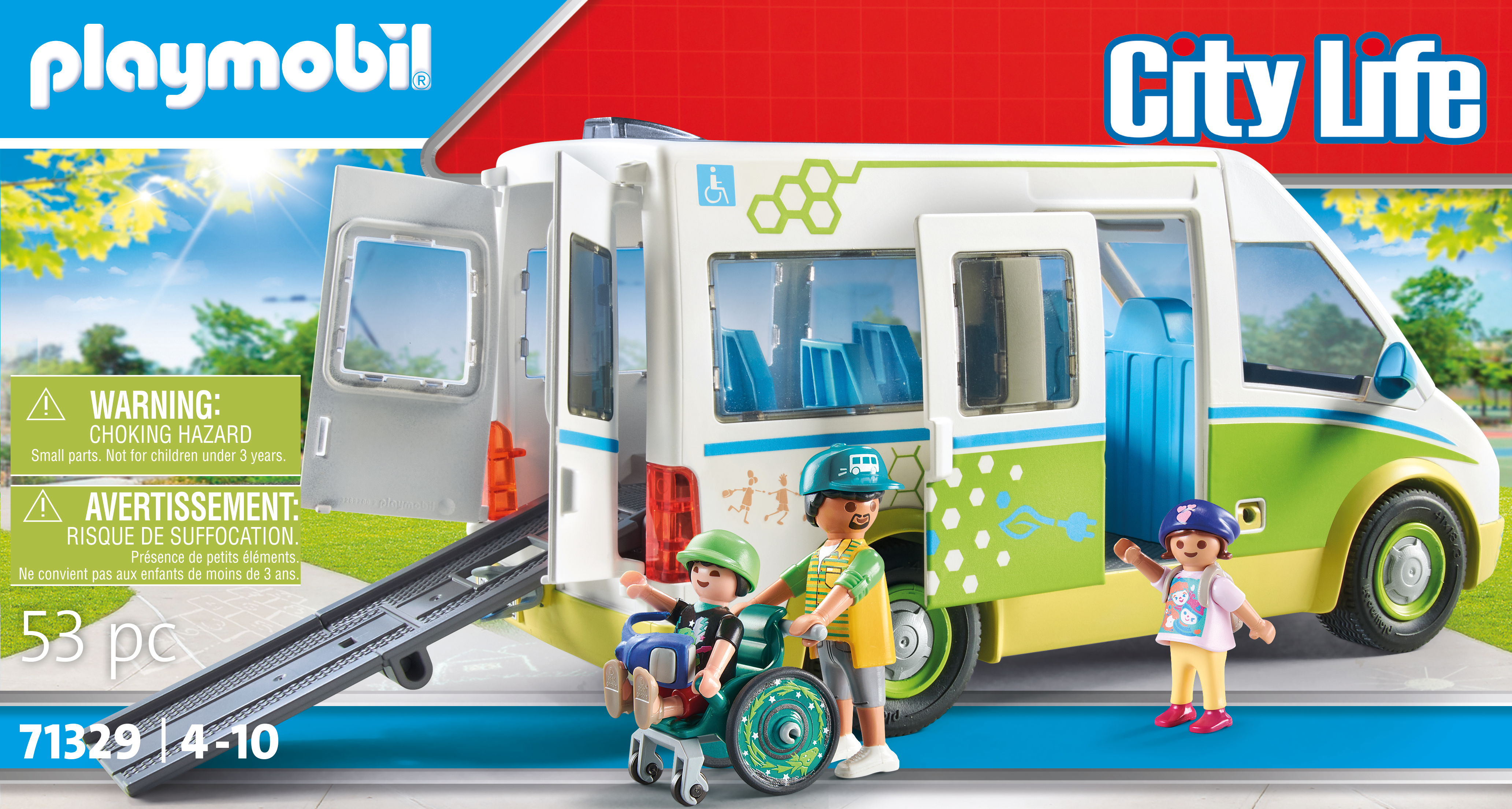 | Plus produit | Avec trois personnages et des accessoires. Les portes à l'arrière s'ouvrent. Une rampe permet à l'enfant en fauteuil roulant de monter à bord. Le |