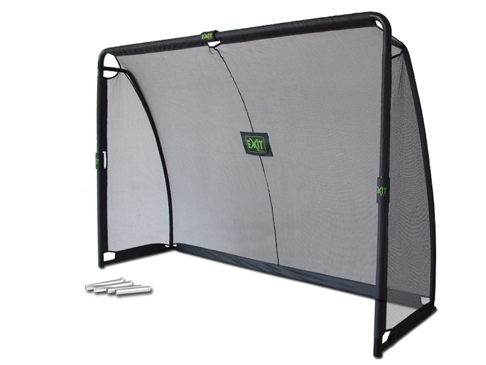 Le modèle EXIT Finta se distingue par son solide système d'ancrage innovant (breveté) et convivial, composé de tubes d'ancrage et de crochets de sol ! Le but est ainsi très stable dans le jardin. Si la pelouse doit être tondue, le but est facile à soulever des crochets de sol et la tondeuse peut être passée. Et, après la tonte, le but EXIT Finta se remet tout aussi facilement.