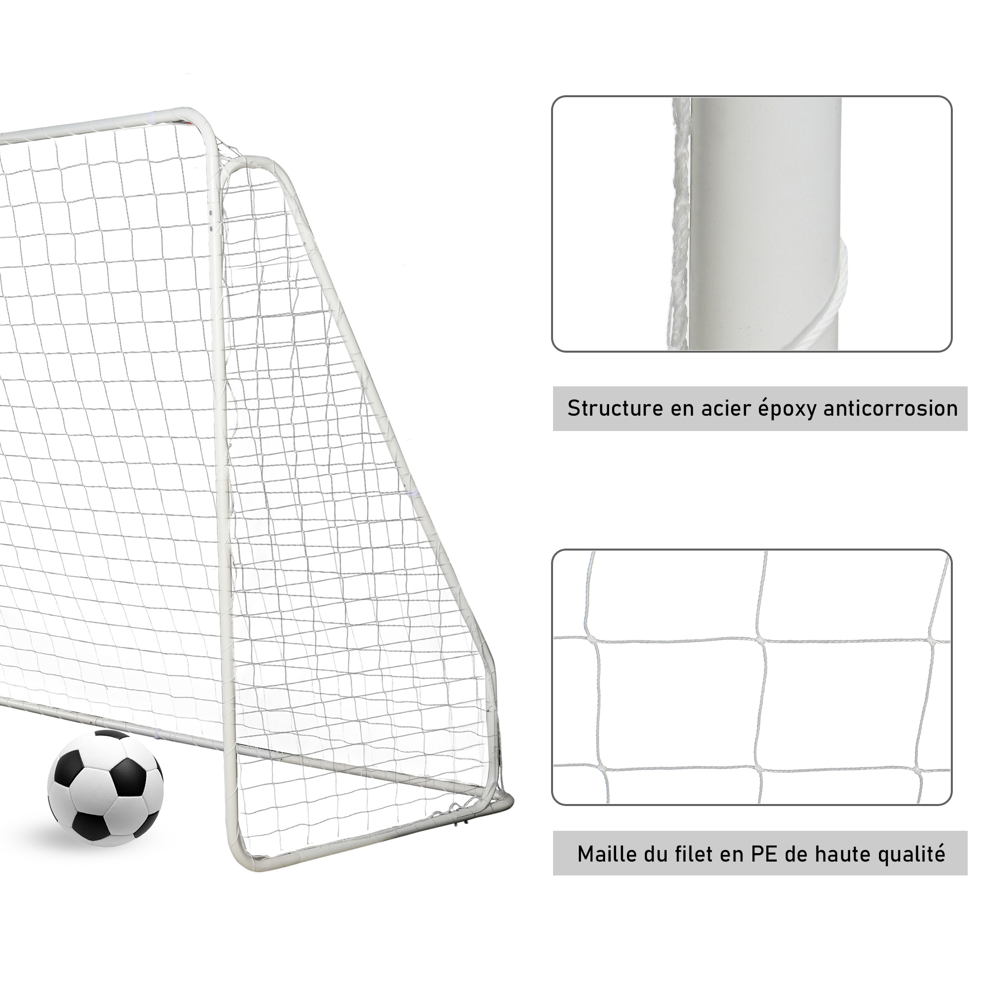 | Libellé | But de football - cage de foot - but futsal dim. 301L x 126l x 200H cm - châssis métal époxy filet PE - piquets inclus - blanc |