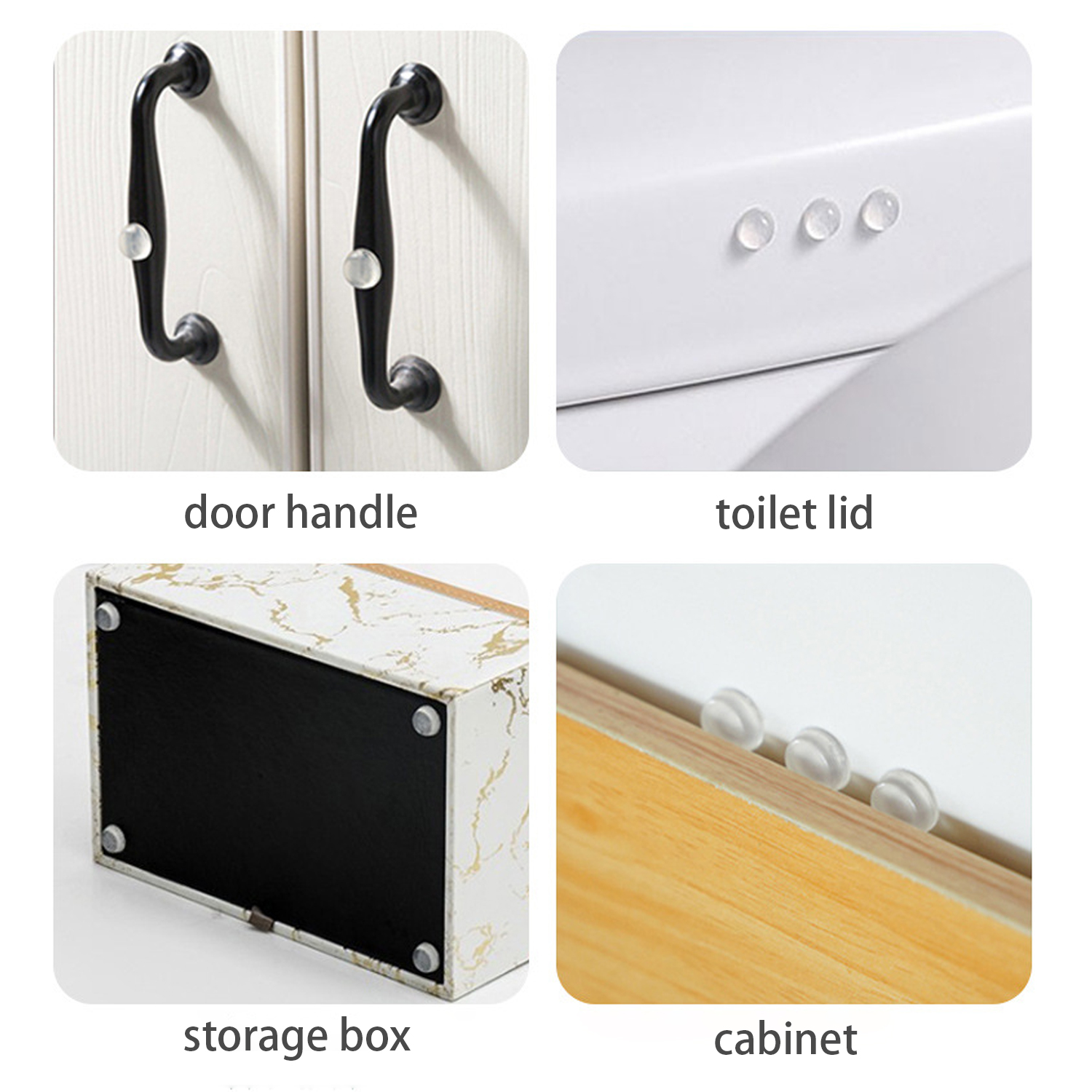 Autocollants doux absorbant les chocs à fixer sur les trappes, tiroirs et portes. Les patins autocollants évitent les chocs, les rayures, les dommages et l'usure et réduisent le bruit lors de la fermeture des portes et des tiroirs.