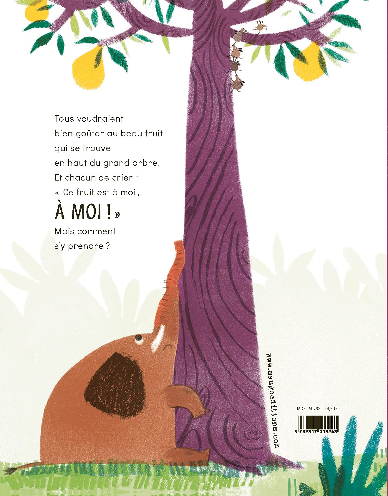 Dans la jungle, cinq éléphants gourmands cherchent par tous les moyens à attraper un beau fruit tout en haut d’un arbre au cri de « C'EST À MOI ! » … Quand, dans le même temps, cinq petites souris malicieuses se groupent et partagent leur force et leur énergie pour atteindre le même but et déguster ensemble le fruit merveilleux.
