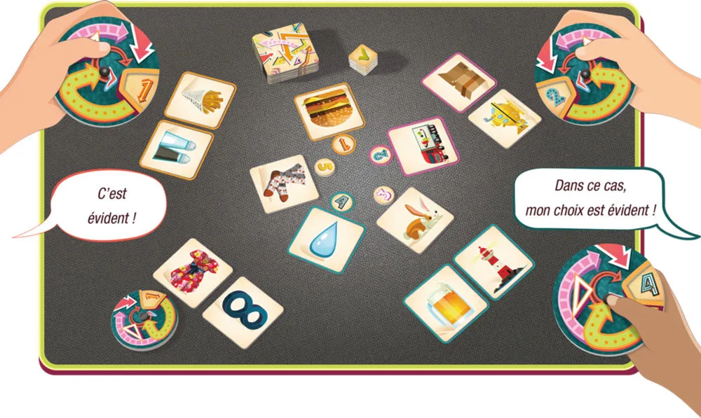 Dans ce jeu d’association d’images coopératif, vous allez devoir choisir simultanément et en secret une image au centre de la table. Facile ? Sauf que vous n’allez pas pouvoir communiquer librement. Observez bien les cartes de chacun et essayez de deviner lesquelles seront associées pour ne pas choisir la même que vos coéquipiers ! Ce qui est évident pour les uns est tiré par les cheveux pour les autres. Serez-vous sur la même longueur d’onde ?