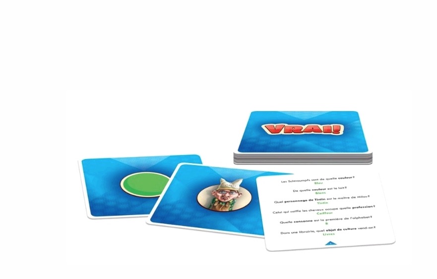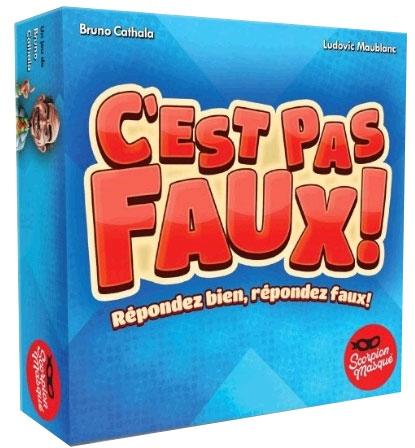 à partir de 10 ans moins de 30 min 3 à 10 joueur(s) C'est pas faux ! est un jeu questionnaire très original. Vous devrez très rapidement (plus vite que les autres) donner de MAUVAISES réponses aux questions très (trop !) faciles qui vous seront posées...La couleur des Schtroumpfs ? Jaune! Bien sûr!Le cri du chat ? Wouf !La langue parlée en France ? L'espagnol!Mais voilà, il arrive parfois que l'animateur vous indique de répondre par une bonne réponse... À vous de réagir promptement à la consigne visuelle ! Contenu50 cartes questions3 cartes règles