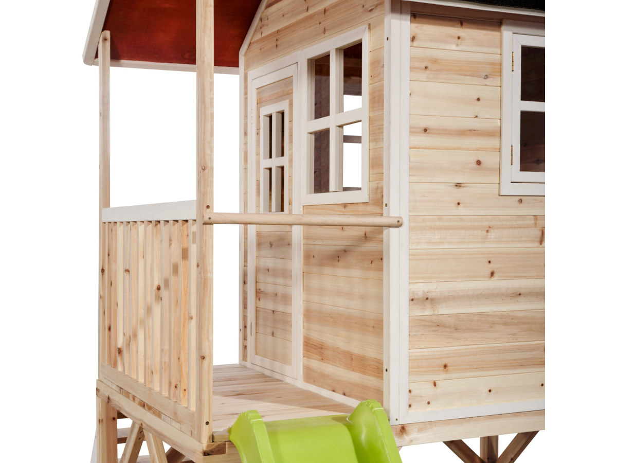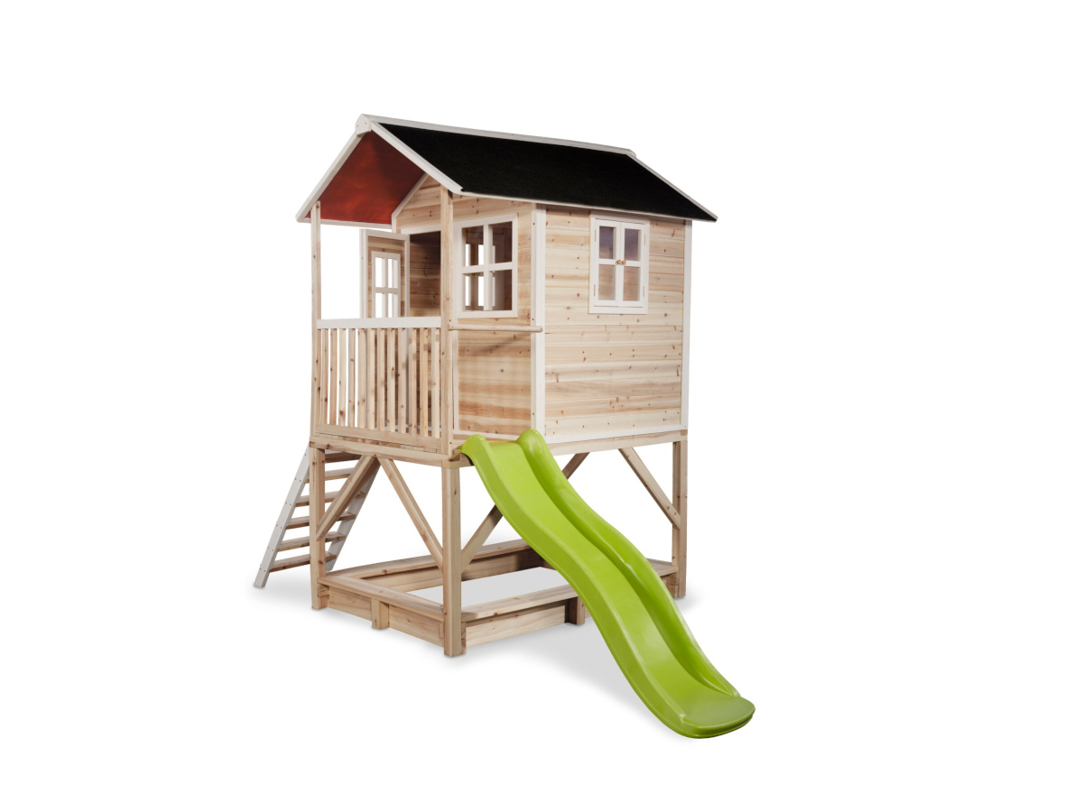 Quel enfant ne souhaite pas posséder sa propre cabane de jardin ? Un endroit idéal pour jouer avec son frère, sa sur, son copain ou sa copine ? Le Loft 500 est une cabane pour tous les âges. Avec ses dimensions intérieures de 1.18m x 1.18m, c'est une cabane de grande taille permettant de jouer à plusieurs. La cabane surélevée possède sa propre véranda et grâce au toboggan, tu redescends en un éclair ! Le toit étanche permet de toujours garder l'intérieur sec ! Les plus jeunes peuvent s'amuser dans le bac à sable tandis que les enfants plus âgés jouent en haut ! Avec ses joyeuses fenêtres blanches, cette cabane est une maison de rêve pour les enfants à partir de 3 ans.