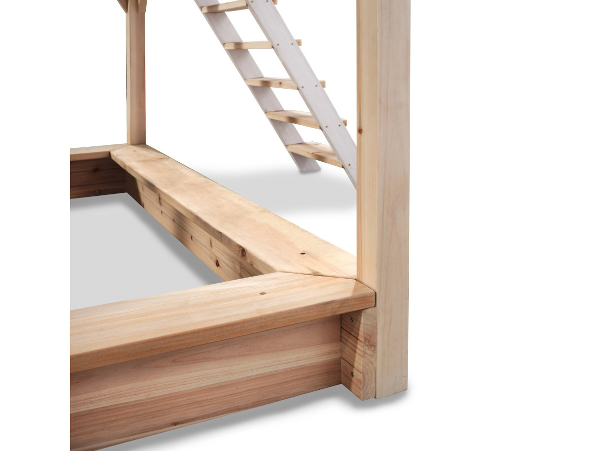 Les cabanes sont fabriquées en cèdre séché. Il s'agit d'un type de bois particulier naturellement résistant aux intempéries et à l'humidité, ce qui le rend imputrescible. Le cèdre n'est pas traité avec des produits chimiques toxiques, comme c'est souvent le cas pour le pin sylvestre ou l'épicéa. Le cèdre est donc bon pour l'environnement et sans risque pour les enfants. Les montants sont peints avec une lasure en phase aqueuse.