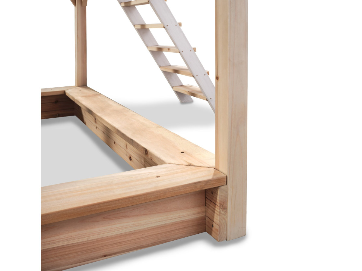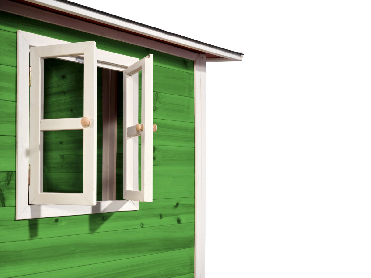 Quel enfant ne souhaite pas posséder sa propre cabane de jardin ? Un endroit idéal pour jouer avec son frère, sa sur, son copain ou sa copine ? Le Loft 500 est une cabane pour tous les âges. Avec ses dimensions intérieures de 1.18m x 1.18m, c'est une cabane de grande taille permettant de jouer à plusieurs. La cabane surélevée possède sa propre véranda et grâce au toboggan, tu redescends en un éclair ! Le toit étanche permet de toujours garder l'intérieur sec ! Les plus jeunes peuvent s'amuser dans le bac à sable tandis que les enfants plus âgés jouent en haut ! Avec ses joyeuses fenêtres blanches, cette cabane est une maison de rêve pour les enfants à partir de 3 ans.