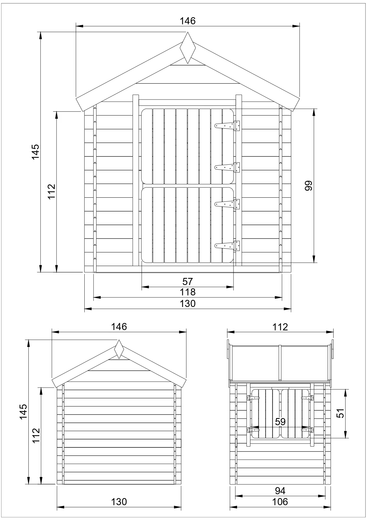 - Dimensions extérieures sans toit : L130 x l106 cm