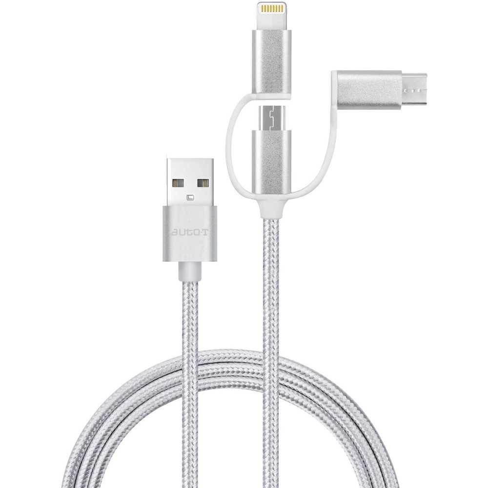 Câble 3 en 1 AUTO-T 540206 - Micro‑USB / Lightning / USB‑C, 100 cm, argenté
