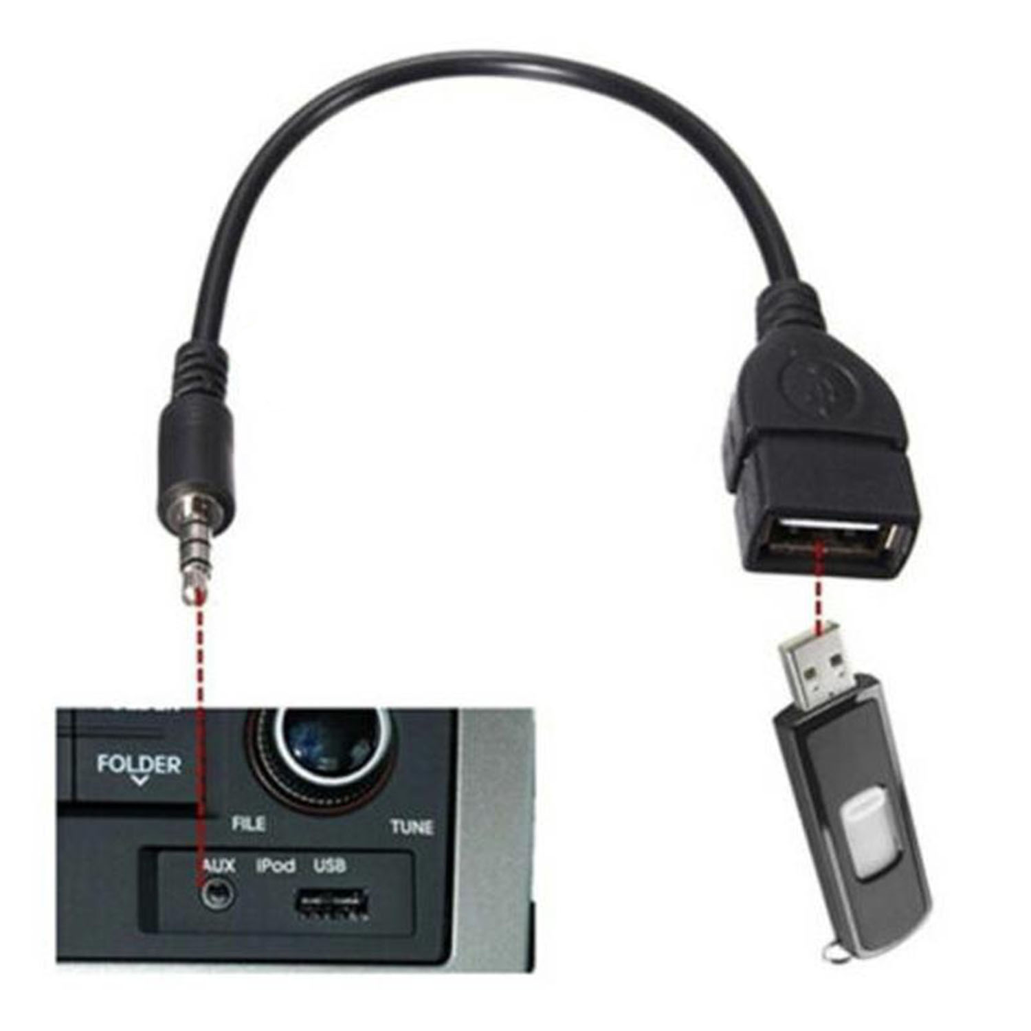 Câble Adaptateur Jack 3.5mm Stéréo Audio Prise Mâle Vers USB 2.0 Femelle - Couleur Noir - visiodirect - Ce câble vous permettra de jouer de la musique via un flash USB avec votre prise AUX dans la voiture, et également de brancher tous les éléments équipés d'un connecteur USB mâle via un périphérique comme un ipod, iPhone, mobile, ect .... Notez bien que ce n'est pas un câble de chargeur.