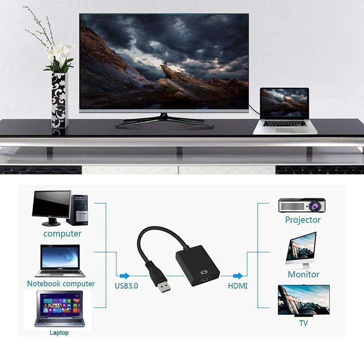 Cable Adaptateur USB 3.0 vers HDMI Convertisseur vidéo audio Noir pour Ordinateurs Portable, Tablettes -