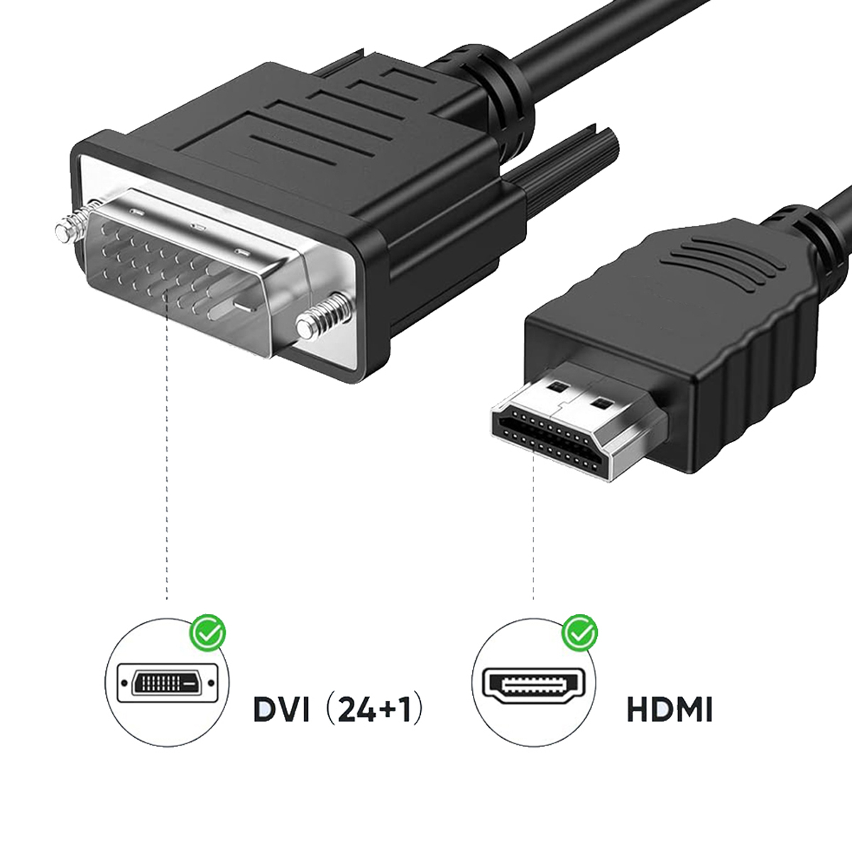 Câble convertisseur HDMI 19 broches type A mâle vers DVI-D 24+1 broches mâle 1.5M Noir pour PC/ordinateur