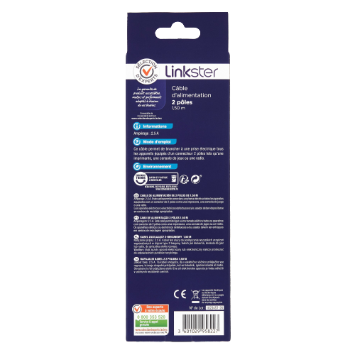 | Libellé | Câble d'alimentation 2 pôles - 1,5m - Sélection d’Experts - Linkster |