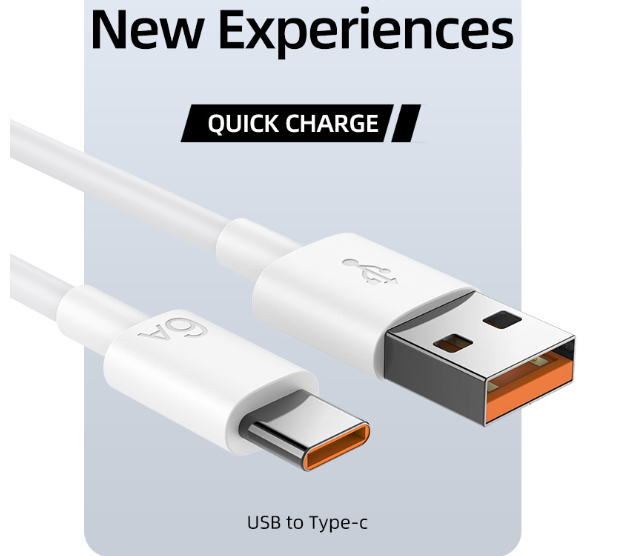 Câble de charge USB-C ultra rapide 66 W 6 A, compatible avec Huawei, Xiaomi White 1 m