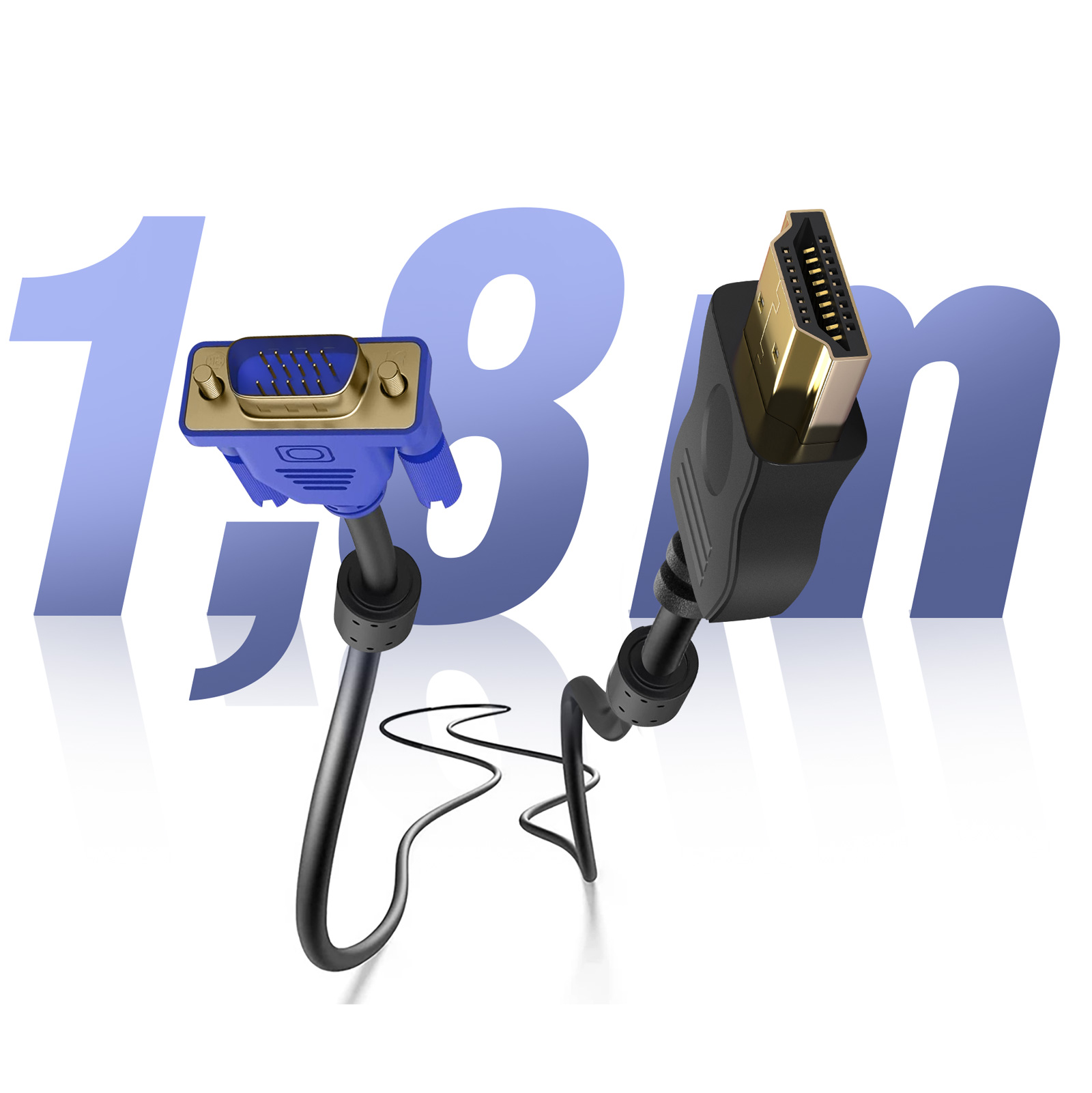 Câble HDMI Mâle vers VGA Mâle 15 Broches 1.8m Transmission Audio et Vidéo Noir