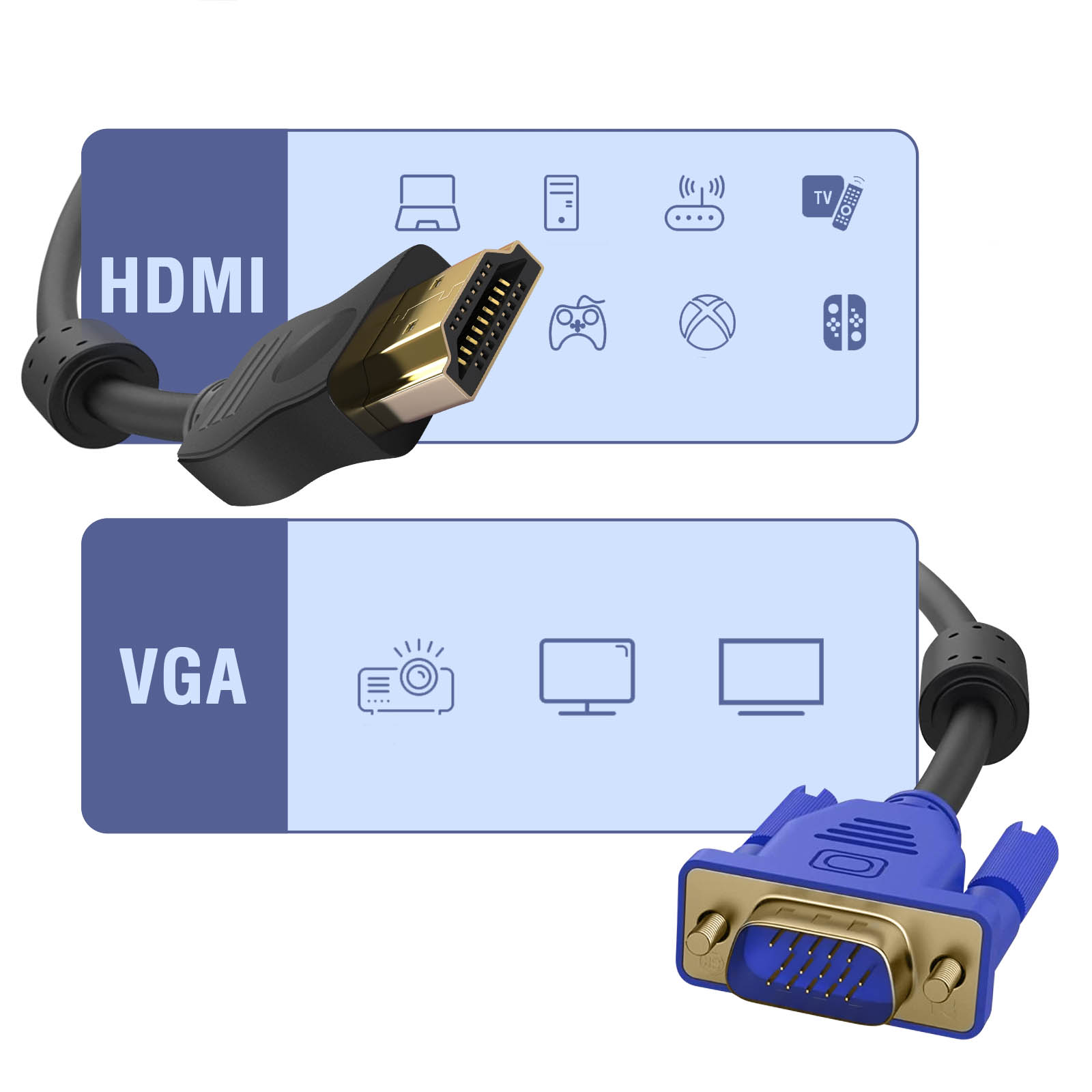 | Libellé | Câble HDMI Mâle vers VGA Mâle 15 Broches 1.8m Transmission Audio et Vidéo Noir |
