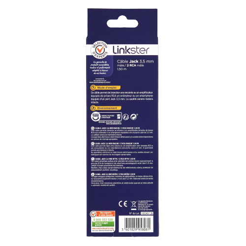 Libellé Câble jack 3,5mm mâle/2 RCA mâle - 1,5m - Sélection d’Experts - Linkster