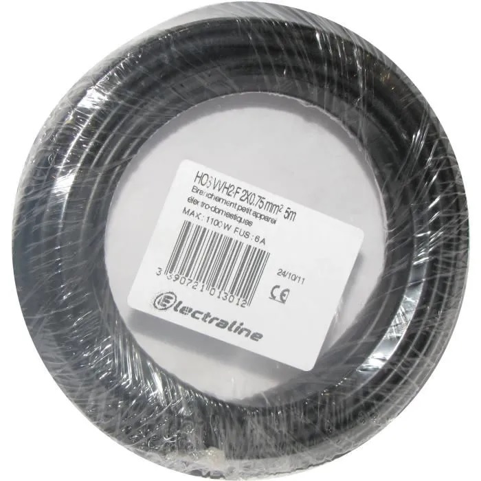 | Libellé | Câble souple HO3 VVH2-F 5m 2 x 0,75mm² noir - 60113023D |