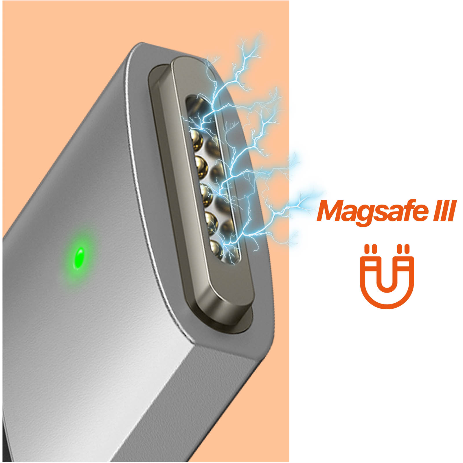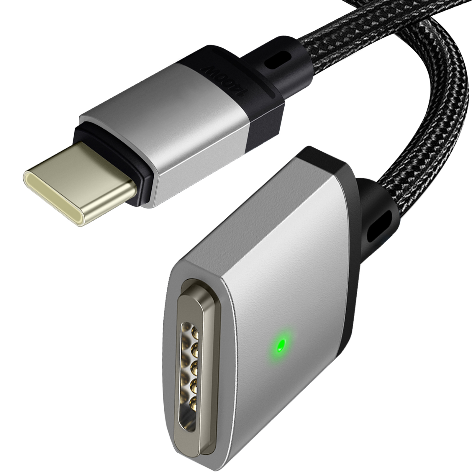 Passer le carrousel d'imagesCâble USB-C vers MagSafe 3 pour MacBook. Connexion magnétique automatique. Recharge puissante jusqu'à 140W avec une sécurité intégrée. Connecteurs en alliage d'aluminium et un câble en nylon tressé de 2 mètres. Voyant LED de charge intégré.