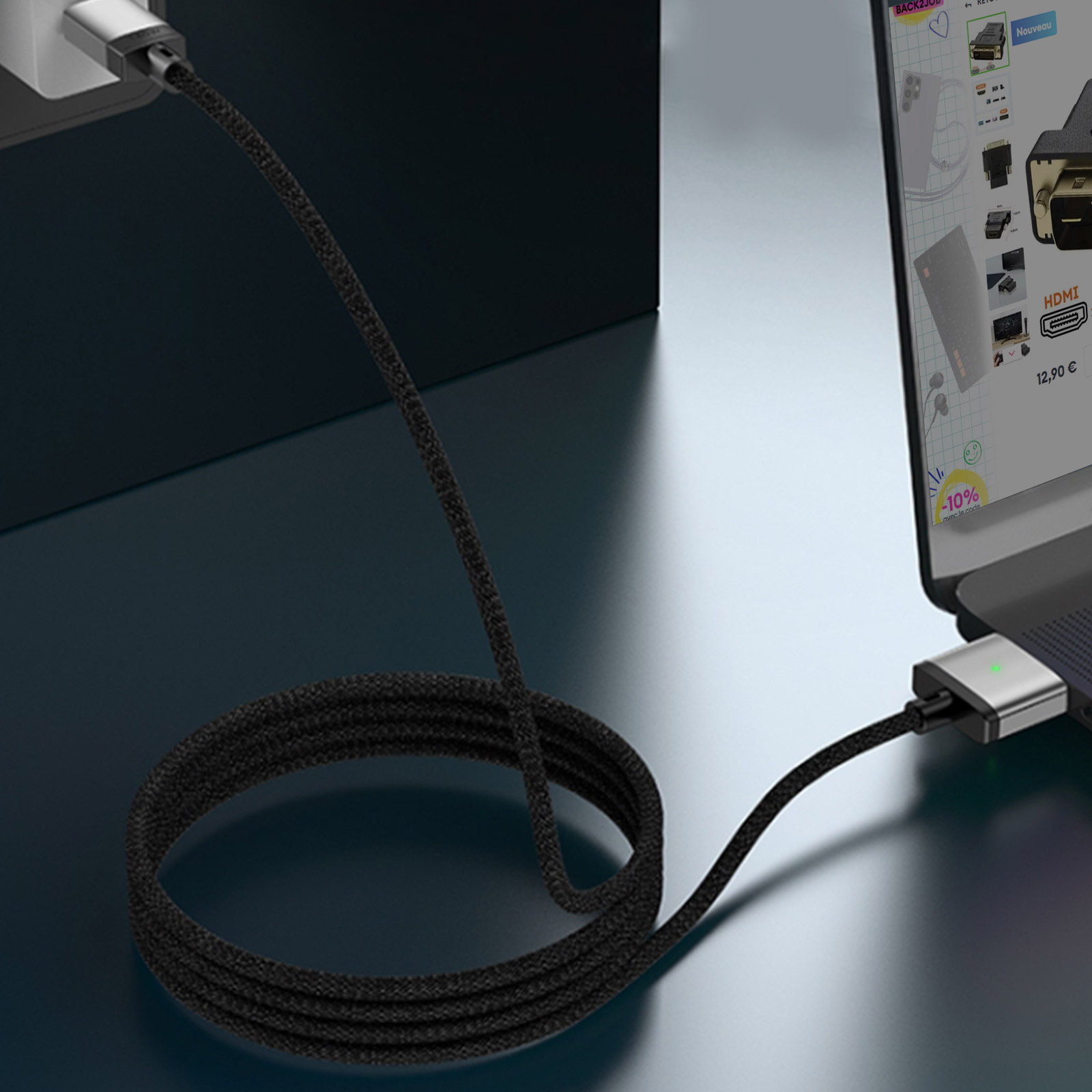 Câble USB C vers MagSafe 3 pour MacBook Pro et Air Nylon 2m 140W Noir et argent