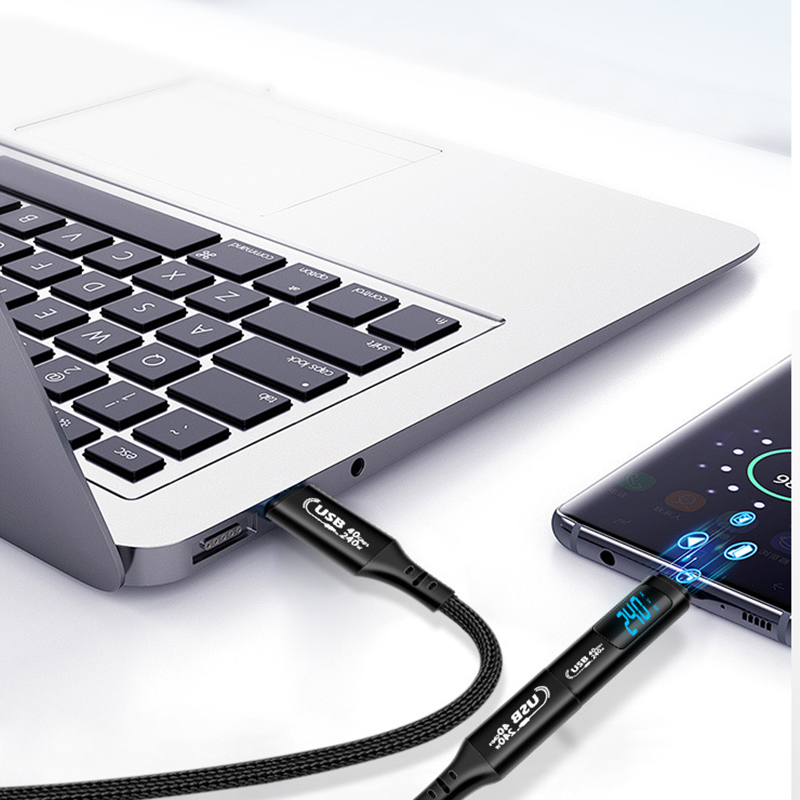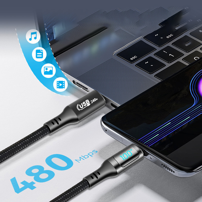 Charge ultra-rapide : Bénéficiez de vitesses de charge inégalées avec notre câble USB-C vers USB-C, prenant en charge une puissance de sortie maximale de 240 W. Ce câble garantit que vos appareils sont alimentés rapidement et efficacement, ce qui vous fait gagner un temps précieux. Que vous chargiez un smartphone, une tablette ou un ordinateur portable, ce câble fournit la puissance optimale nécessaire pour une recharge rapide. La technologie avancée de fourniture d'énergie ajuste intelligemment la tension et le courant pour correspondre aux exigences de votre appareil, empêchant ainsi la surcharge et assurant un fonctionnement sûr. Profitez de la commodité d'une charge ultra-rapide et restez connecté plus longtemps.