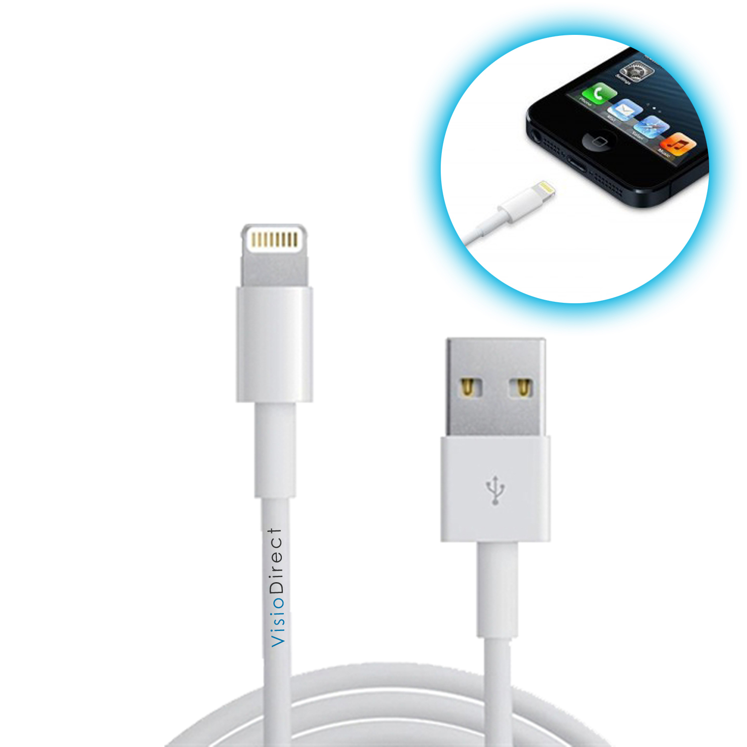 Cable USB de charge blanc pour iPhone 5 -Visiodirect-