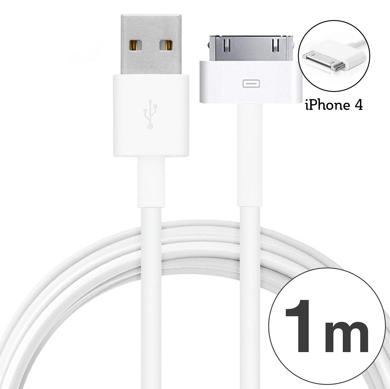Cable usb Iphone 4 / 4S cable 1M 2A - Blanc